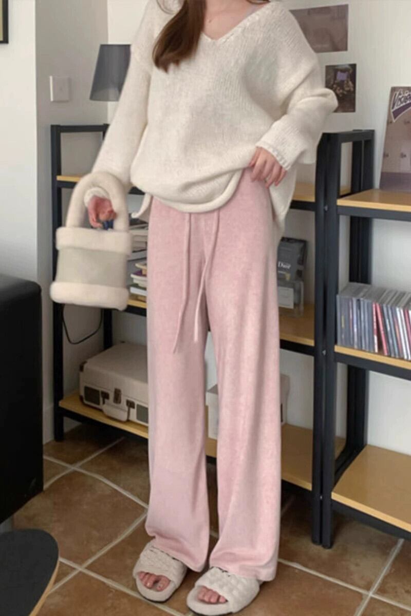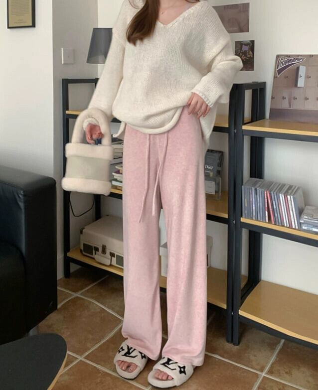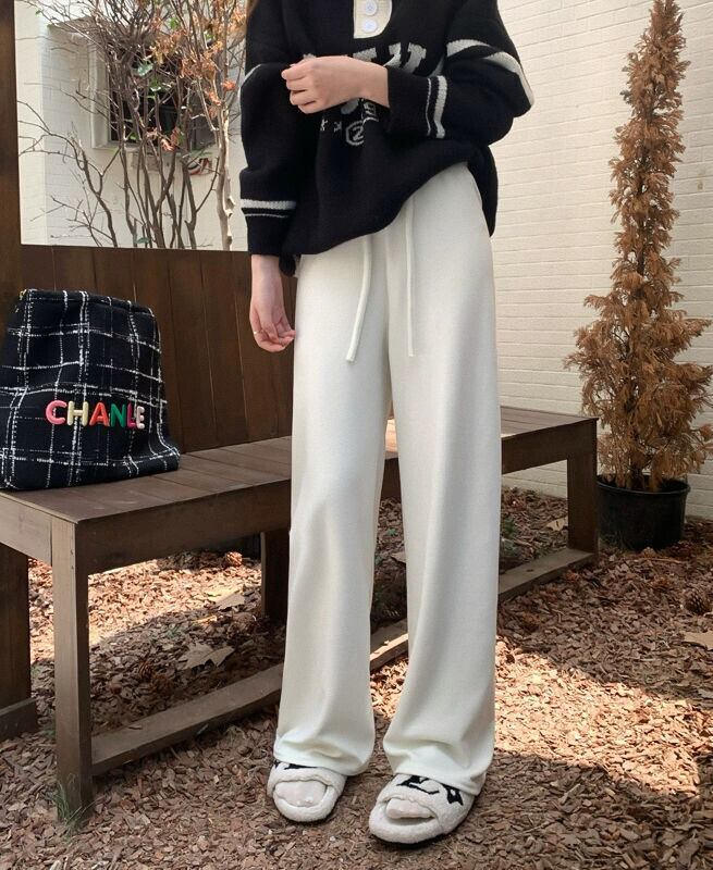 プラスサイズの秋の新ソフトワックス巾着ストレートカジュアルパンツ女性脂肪MMハイウエスト肥厚ワイドレッグパンツ床モップパンツ ハイウェスト 大きめサイズ オータム 秋物 ワイドパンツ 8884150709052324