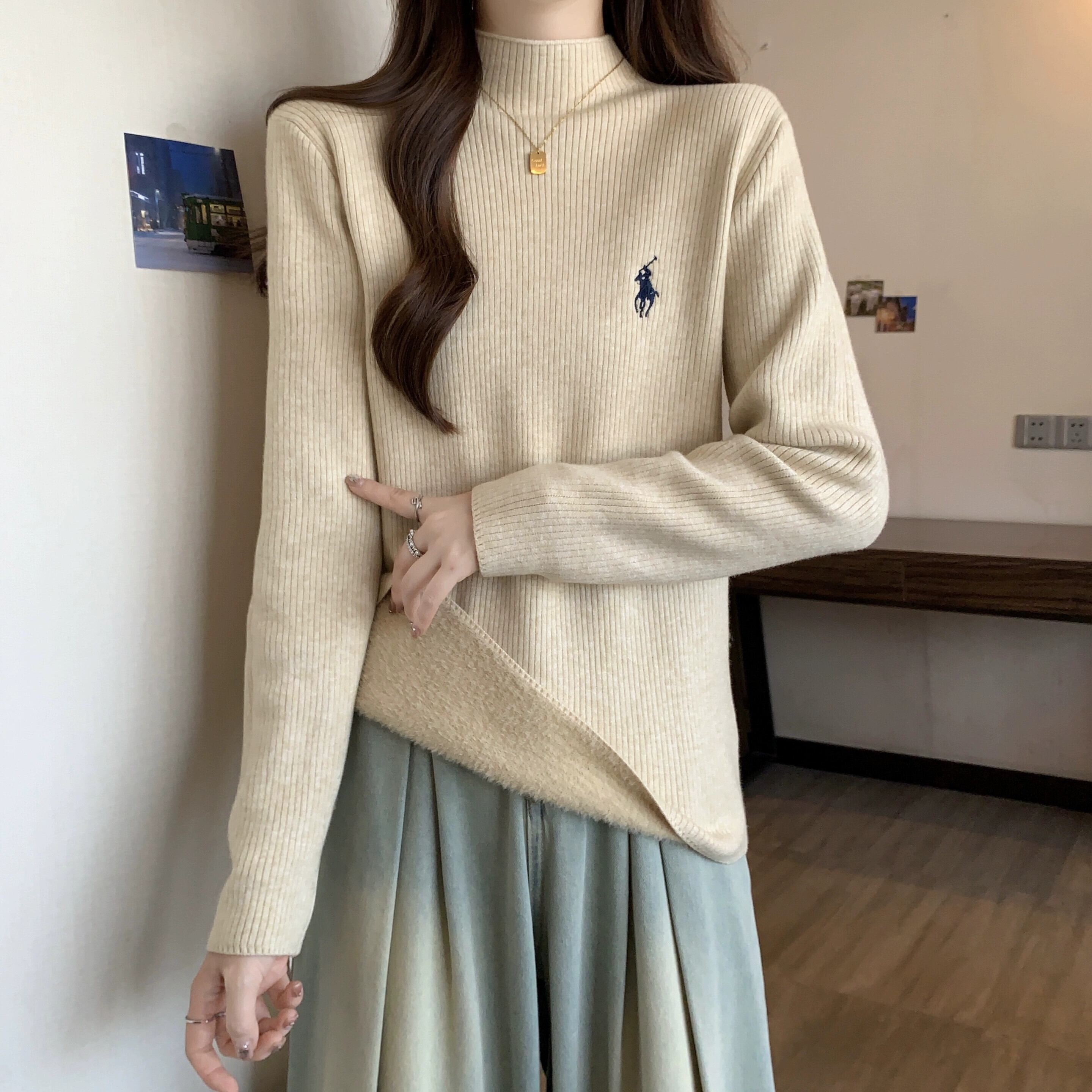 プラスサイズの婦人服 2023 トレンディな秋の新しい脂肪姉妹セーターハーフタートルネックプルオーバーボトシャツ暖かいトップ女性 大きめサイズ オータム 秋物 8884146711713994