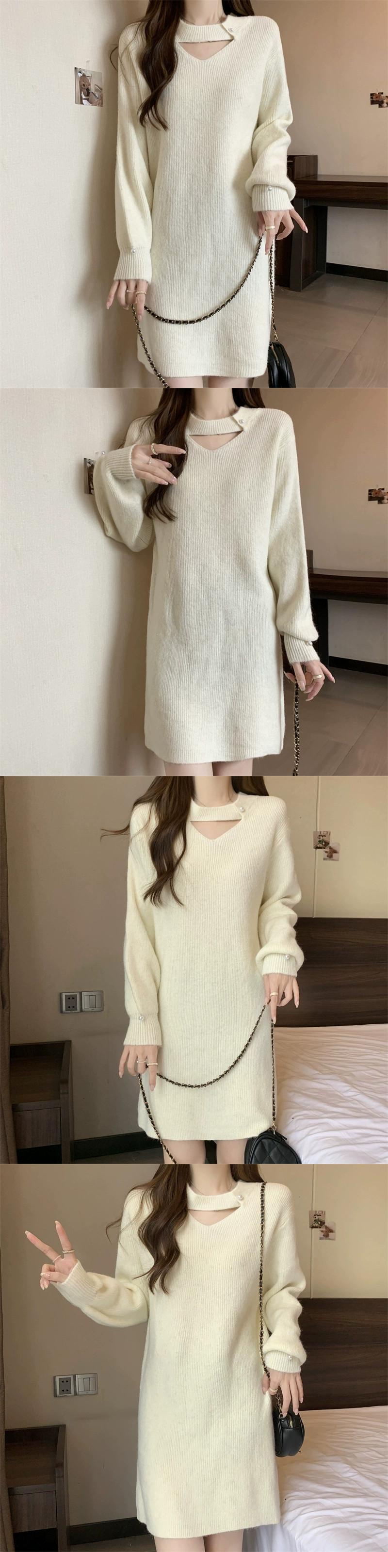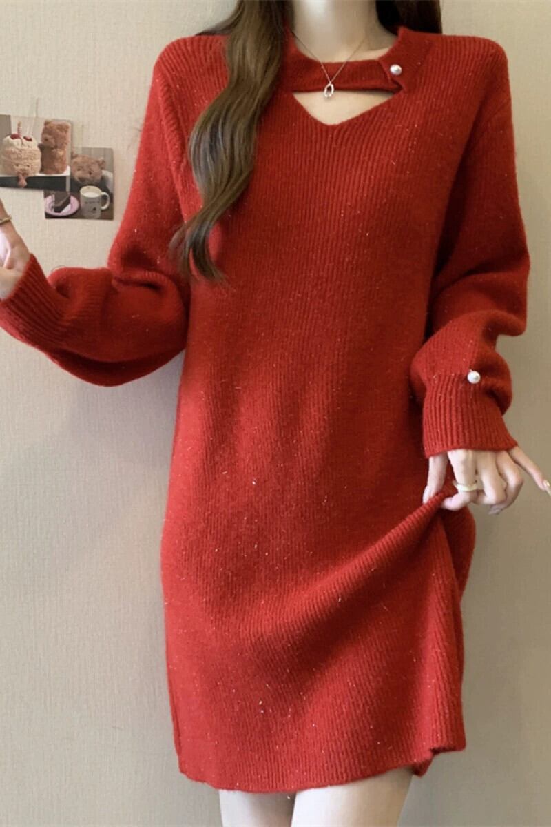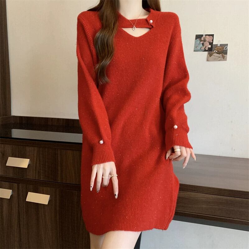 プラスサイズの婦人服ファット mm 秋と冬の新スタイル 2023 デザインフレンチ年齢軽減ドレス緩い腹カバーニットスカートトレンディ 大きめサイズ オータム 秋物 ウィンター 冬物 8884138450570982
