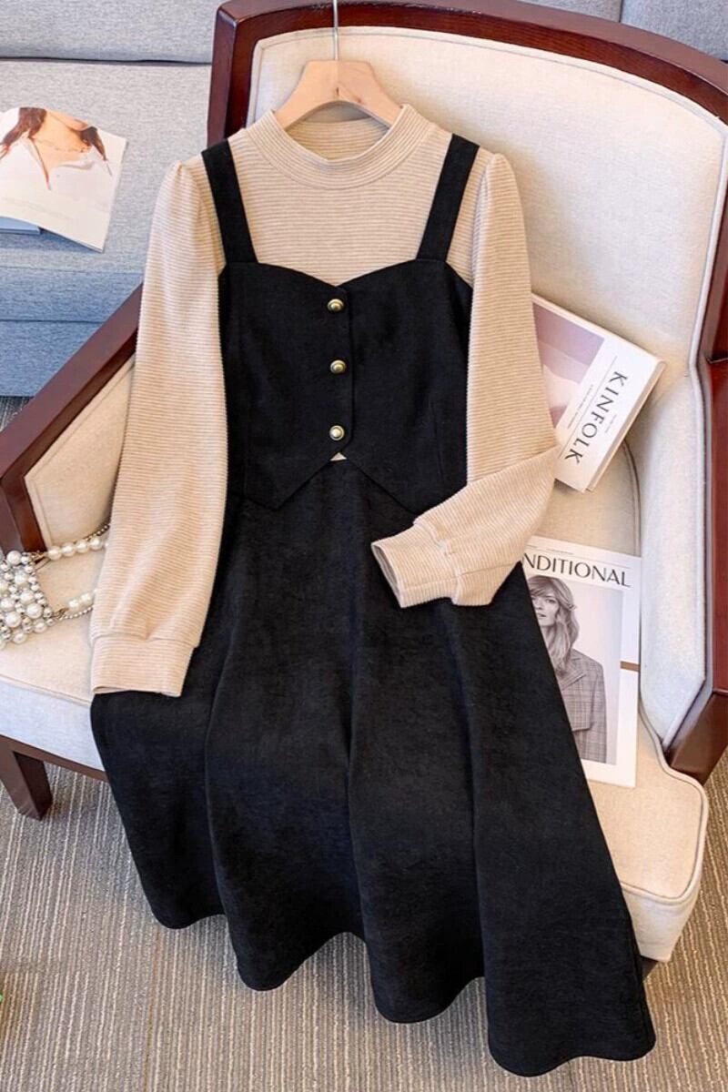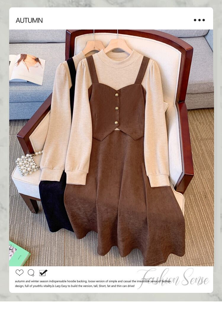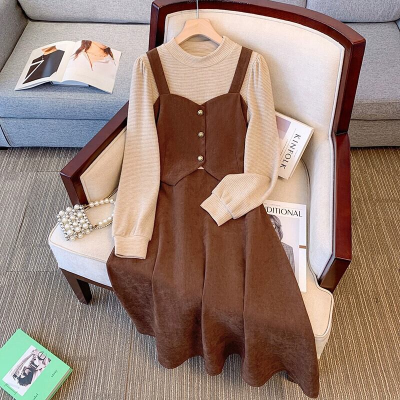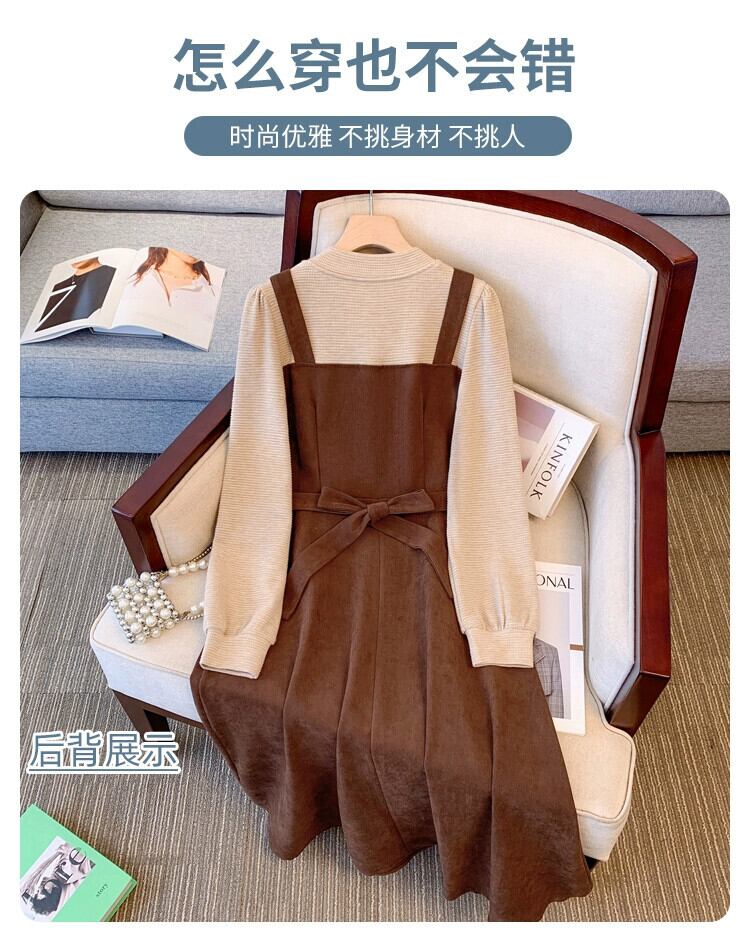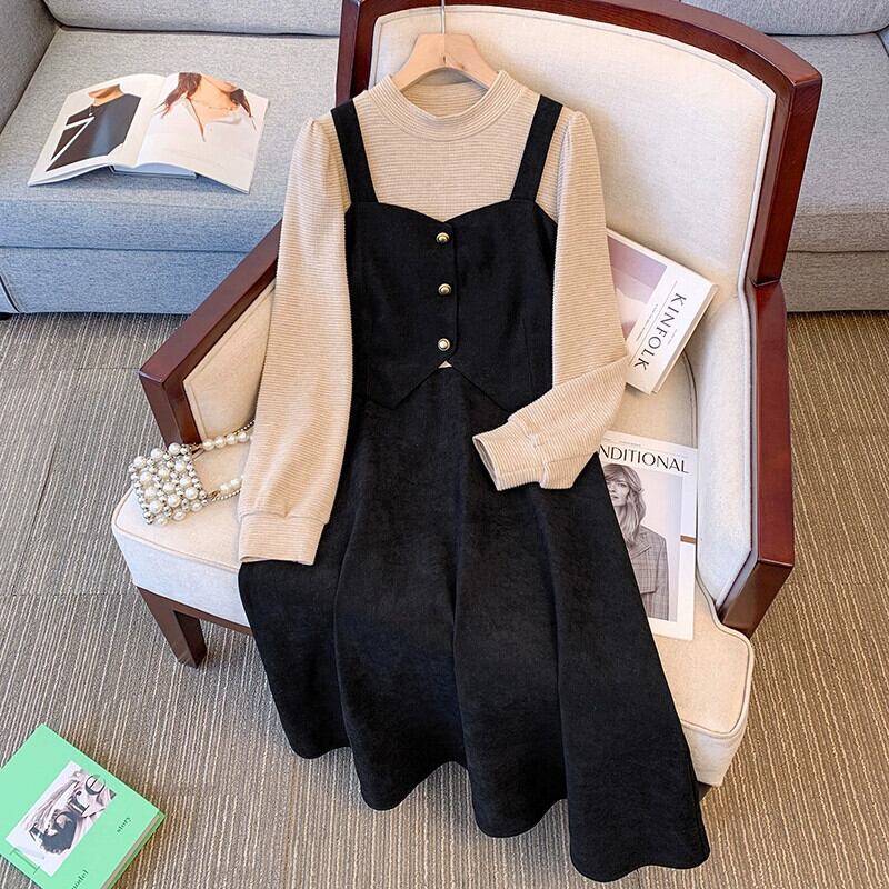 プラスサイズの女性の脂肪 mm フレンチレトロフェイクツーピース A ラインスカート冬の新 2023 気質デザインドレス 大きめサイズ ウィンター 冬物 Aライン 8884177721660880