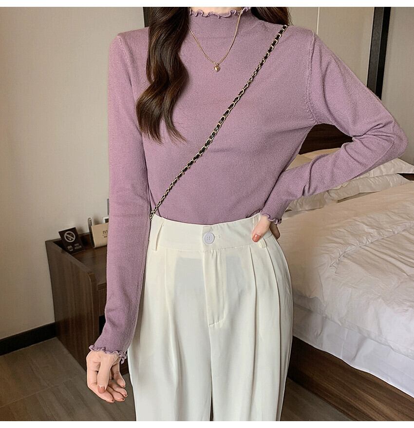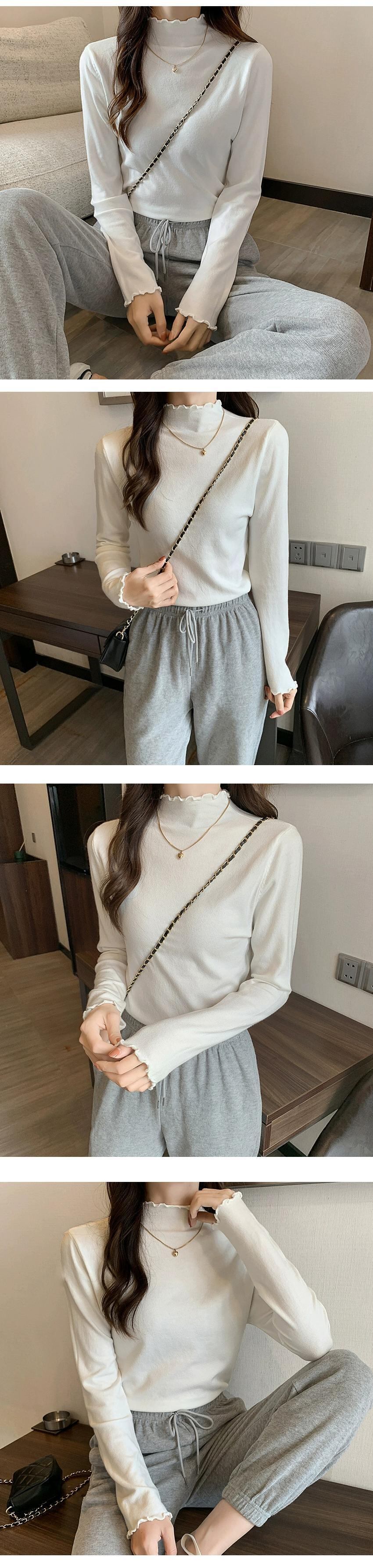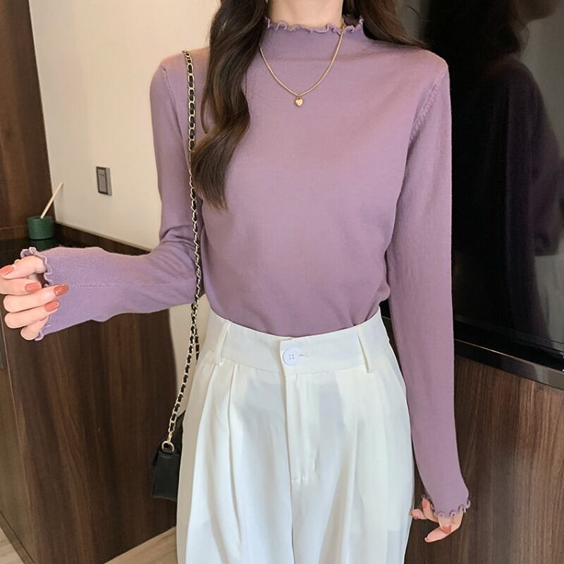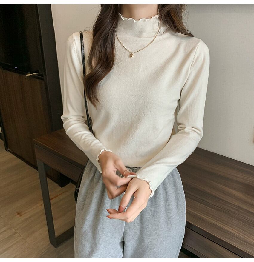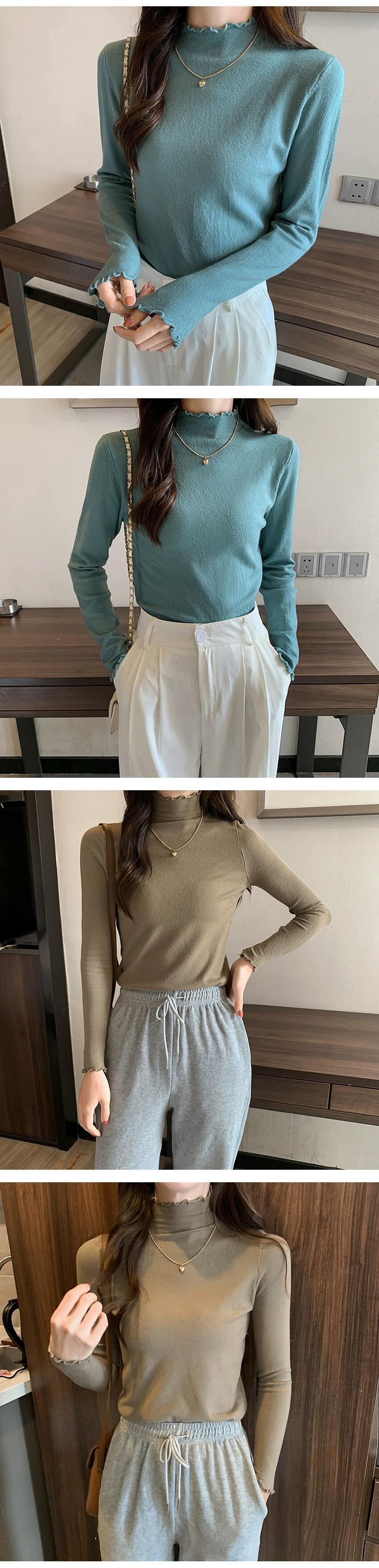 プラスサイズの婦人服ファット mm 2023 秋の新デザイン真菌ハーフハイカラー長袖スリム無地トップトレンディ ロング 大きめサイズ オータム 秋物 ソリッドカラー 8884110656076864