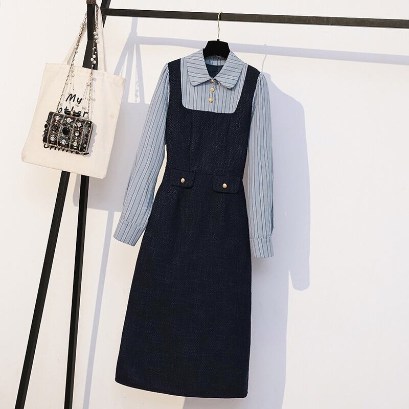 プラスサイズの婦人服ファット mm 秋冬新スタイル 2023 eign ファッション万能スーツスリムコートドレス 2 点セット 大きめサイズ オータム 秋物 ウィンター 冬物 8884140593916103