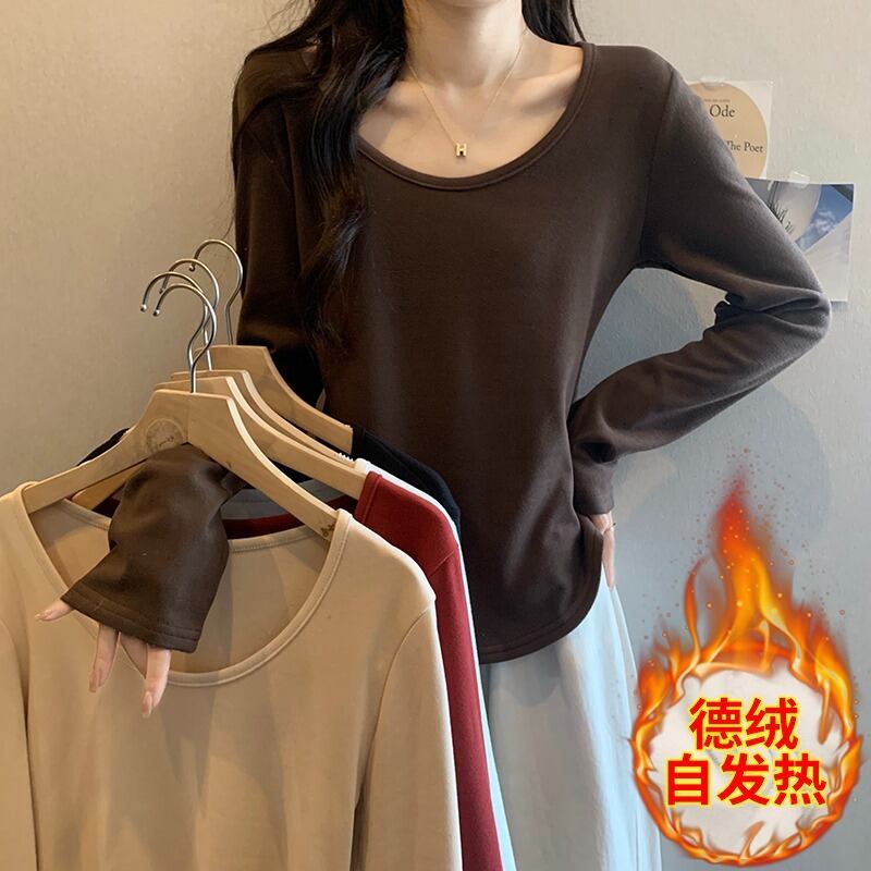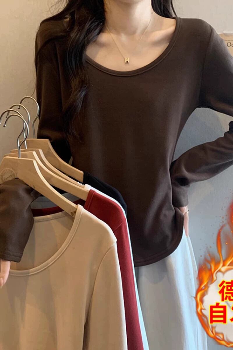 大きいサイズ少し太い mm2023 新しい冬のスタイル超格好良いプラスベルベット厚みの t シャツの女性のドイツのベルベットの底シャツ長袖トップ ロング 大きめサイズ ウィンター 冬物 Tシャツ 888418735819128