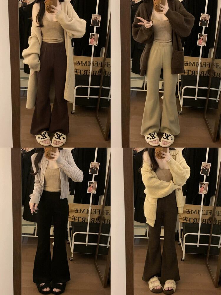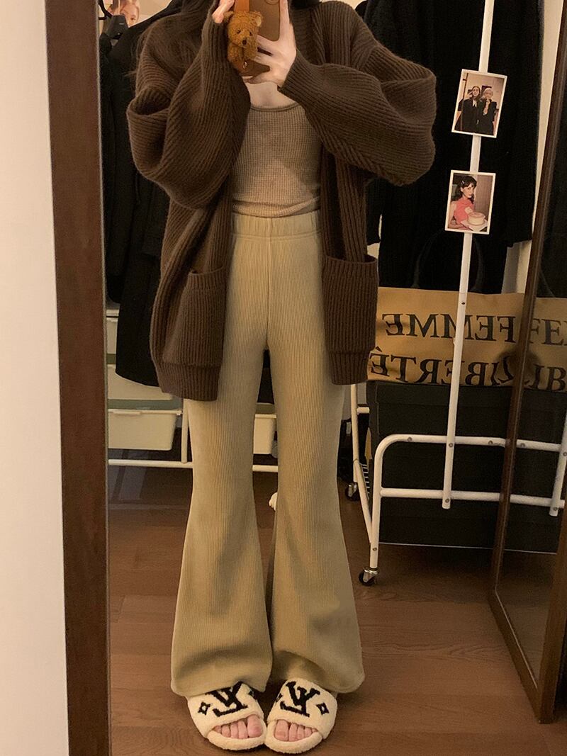 プラスサイズの女性のローウエストマイクロフレアパンツ新しい冬肥厚スリムカジュアルパンツファットmmスリムフロアレングスパンツ 大きめサイズ ウィンター 冬物 8884180969768553