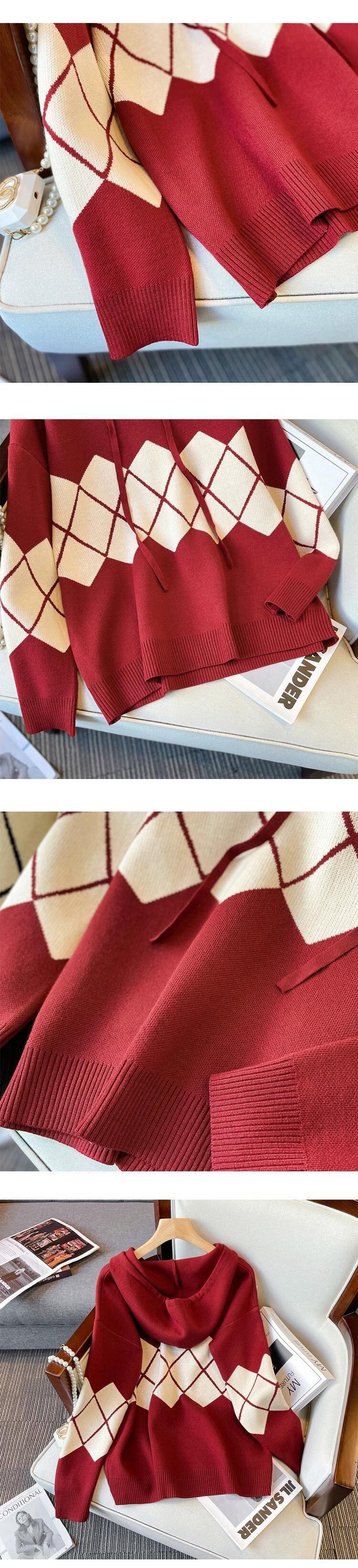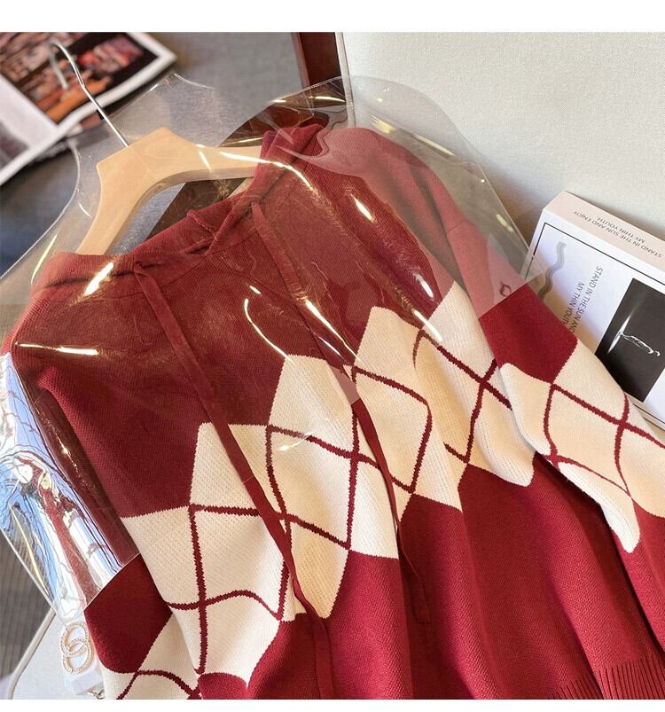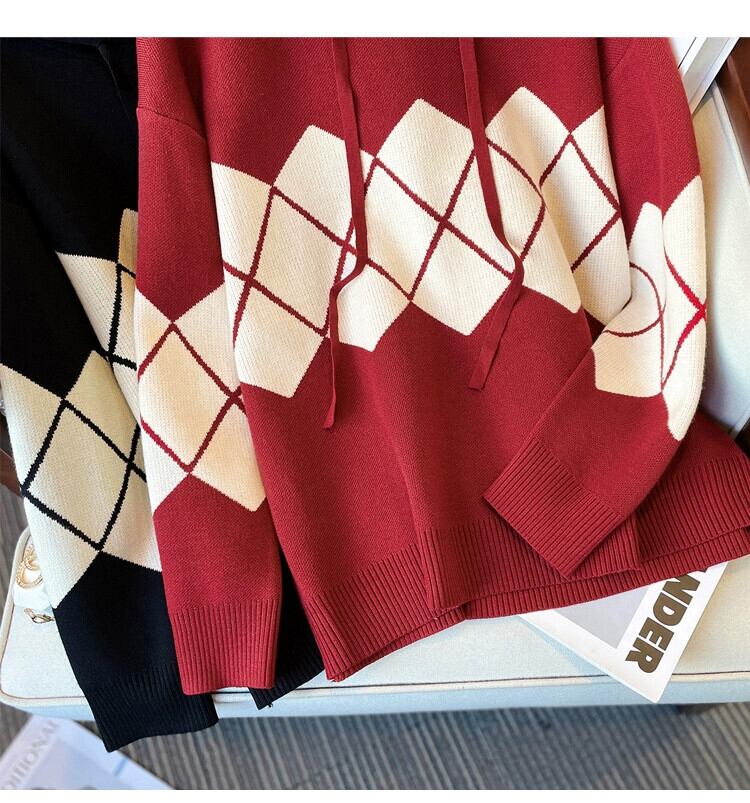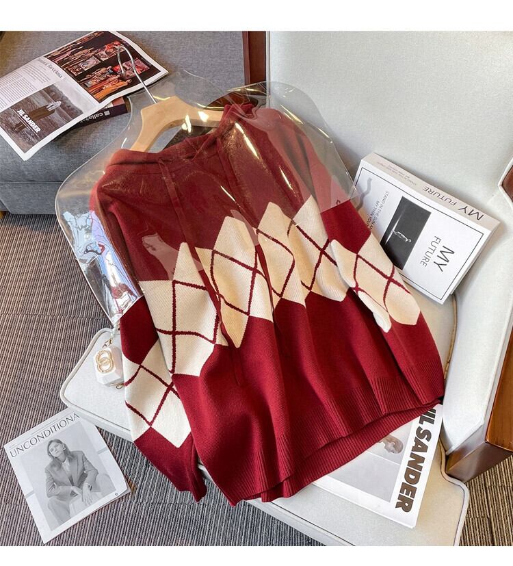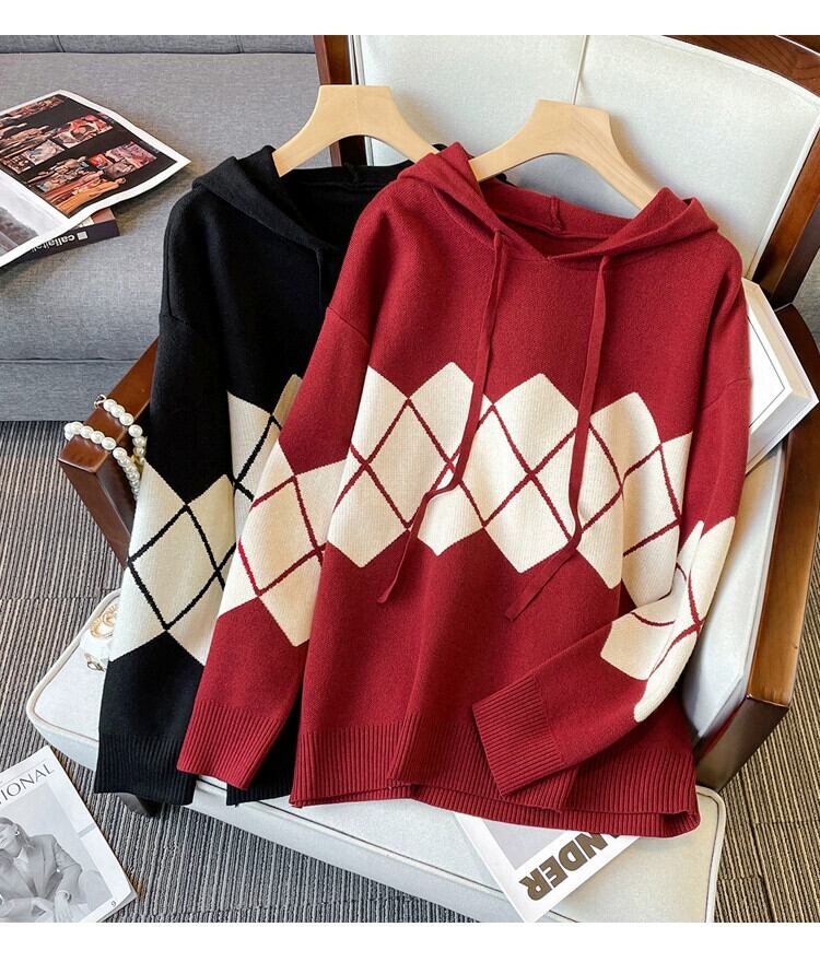 プラスサイズの女性のセーターの女性の秋と冬 2023 新しいスタイルのミッドレングス脂肪 mm 年齢を軽減する多用途のフード付き長袖対照的な色のファッション ロング 大きめサイズ オータム 秋物 ウィンター 冬物 888415143351083