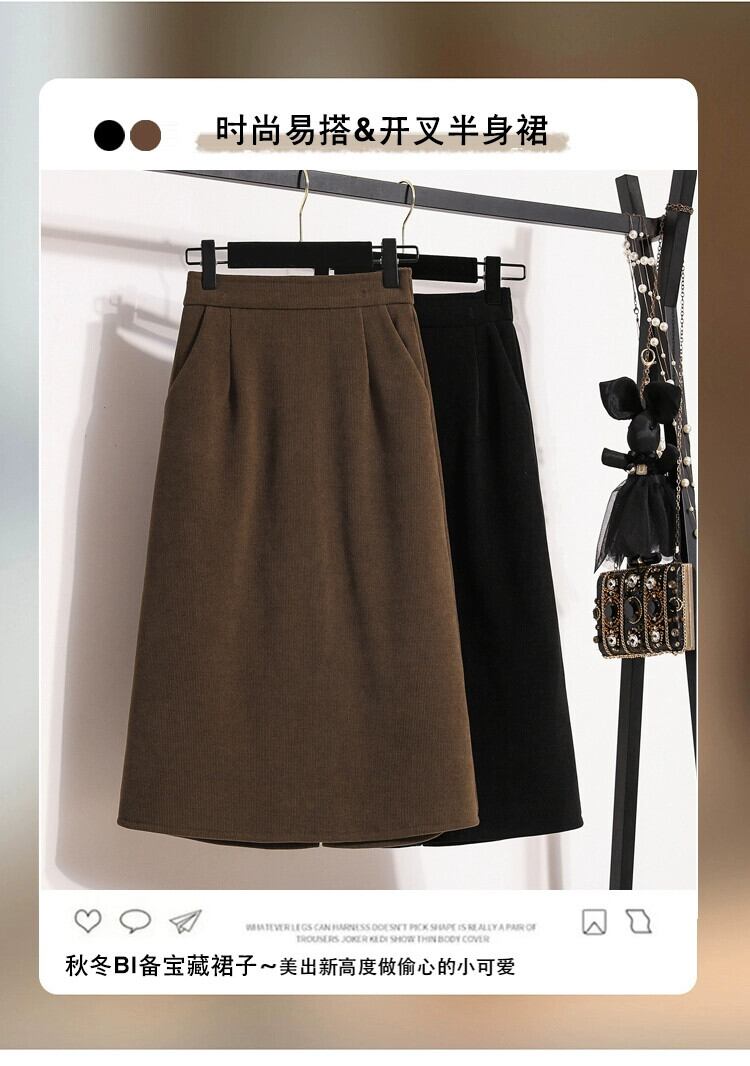 プラスサイズの女性の新しい冬服ストレートニットスカートわずかに太いミリメートルルーズハイウエストaライン痩身ロングスカート ハイウェスト 大きめサイズ ウィンター 冬物 8884169963780407