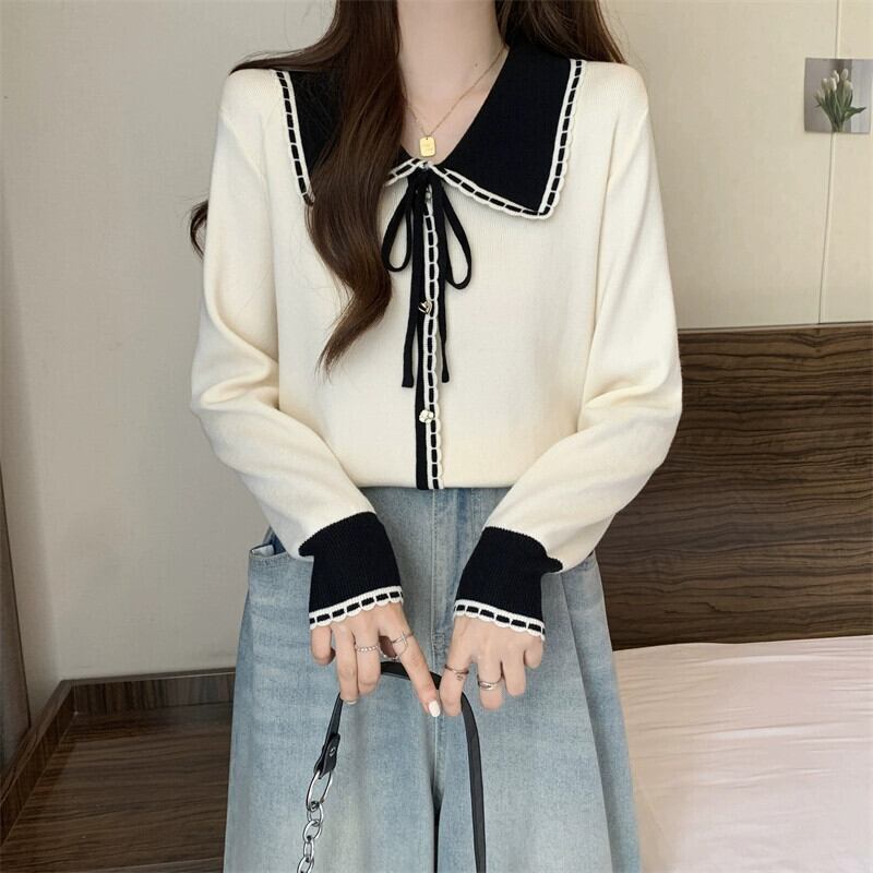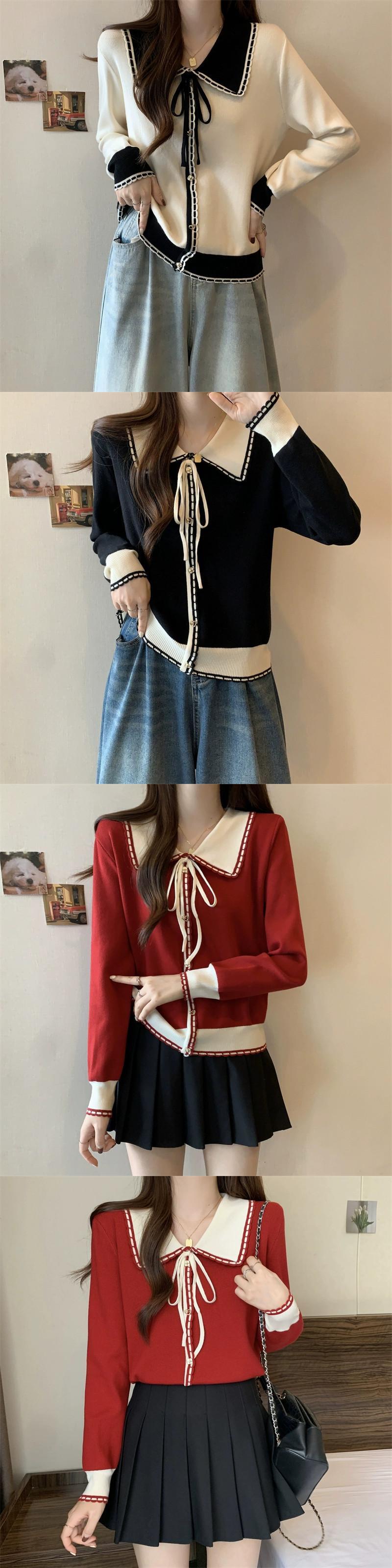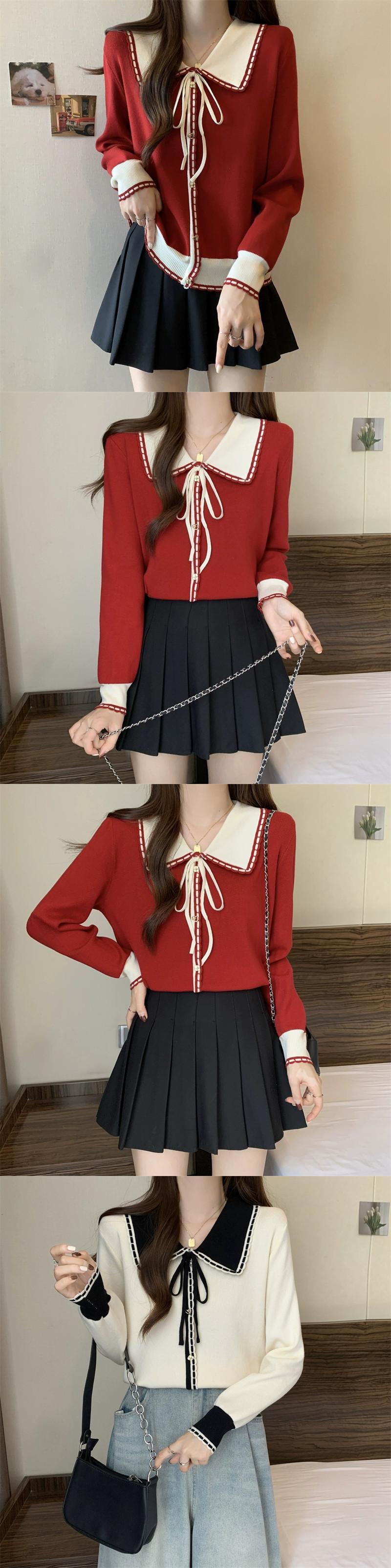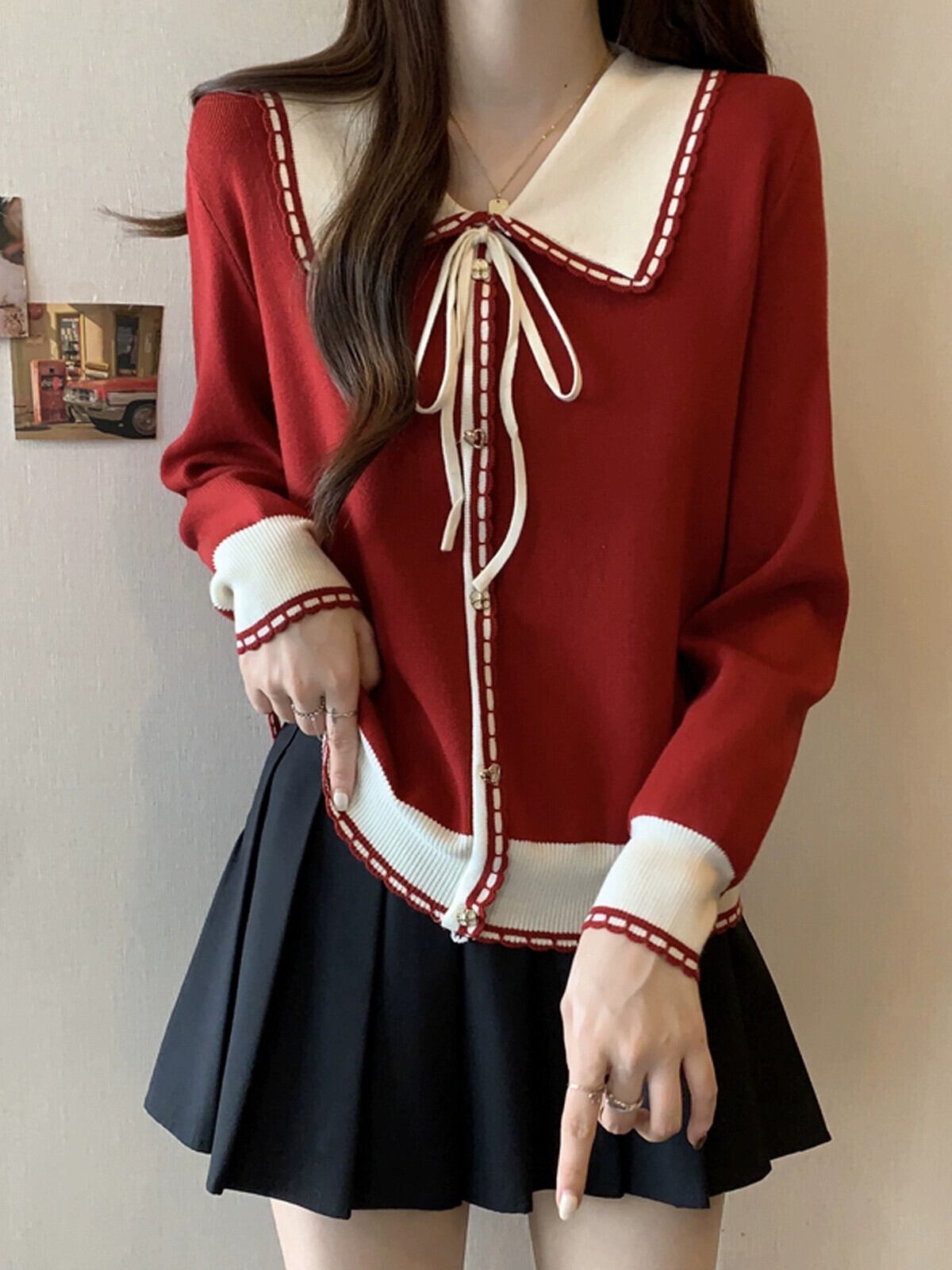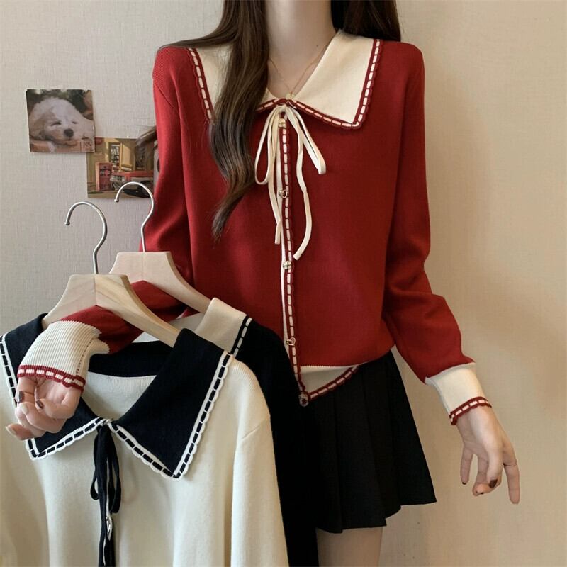 フランス人形の襟の赤いセーターの女性の秋と冬の新しい大きいサイズの脂肪 mm 痩身小さな香りのスタイル対照的な色の底付けトップ レッド 大きめサイズ オータム 秋物 ウィンター 冬物 8884183372227822