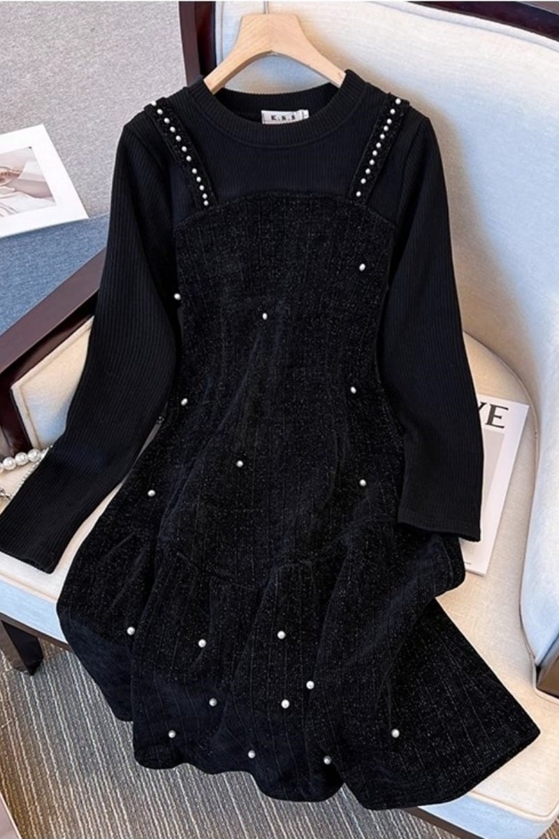 プラスサイズの脂肪ミリメートルハイエンド絶妙な黒のドレス新しいスリムフレンチヘップバーンスタイルウエストドレストレンディな ブラック 大きめサイズ 888416825657699