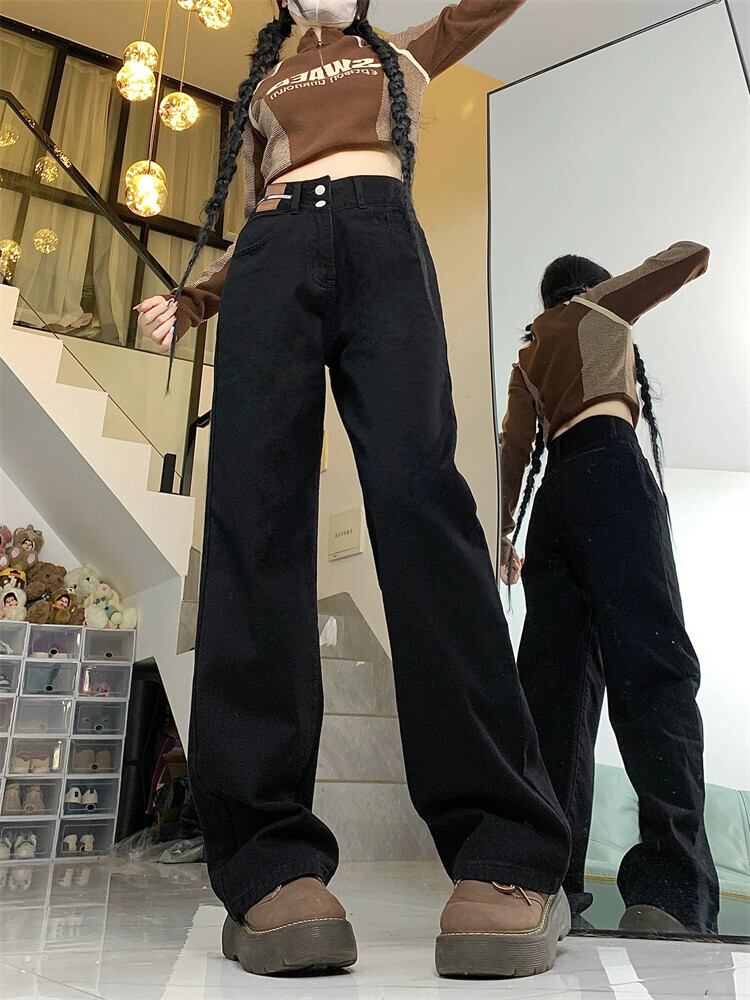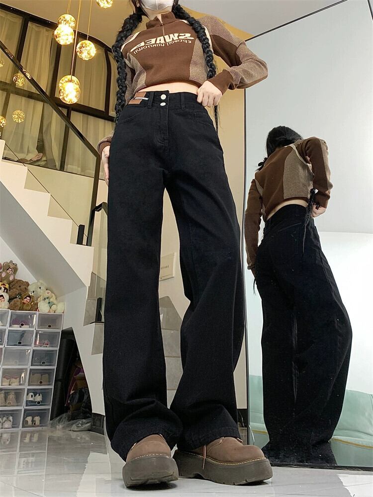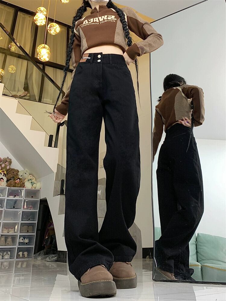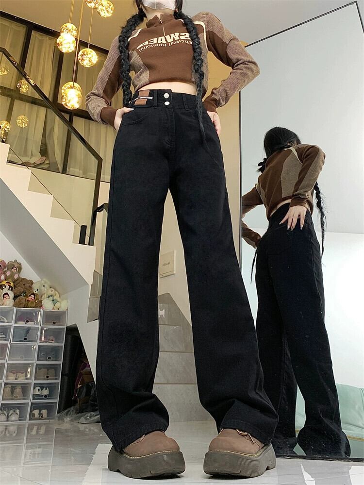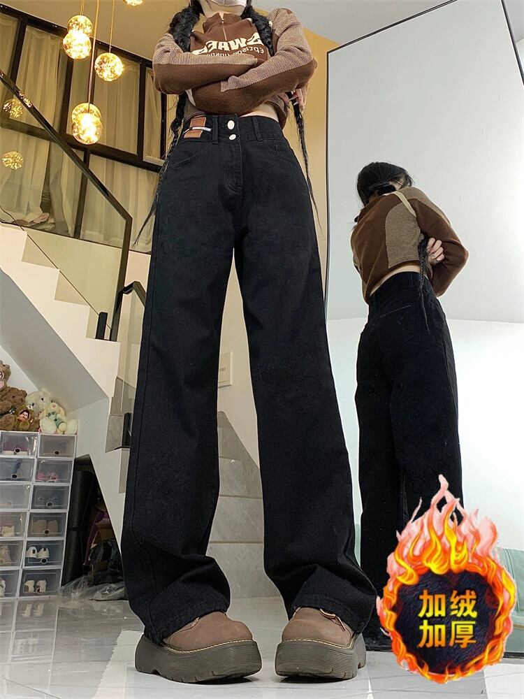 冬のベルベット肥厚ジーンズ女性 2023 新スタイル小大サイズ脂肪ミリメートル痩身ハイウエストストレートパンツ ハイウェスト 大きめサイズ ウィンター 冬物 8884111094434977