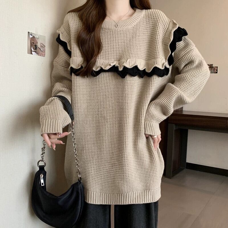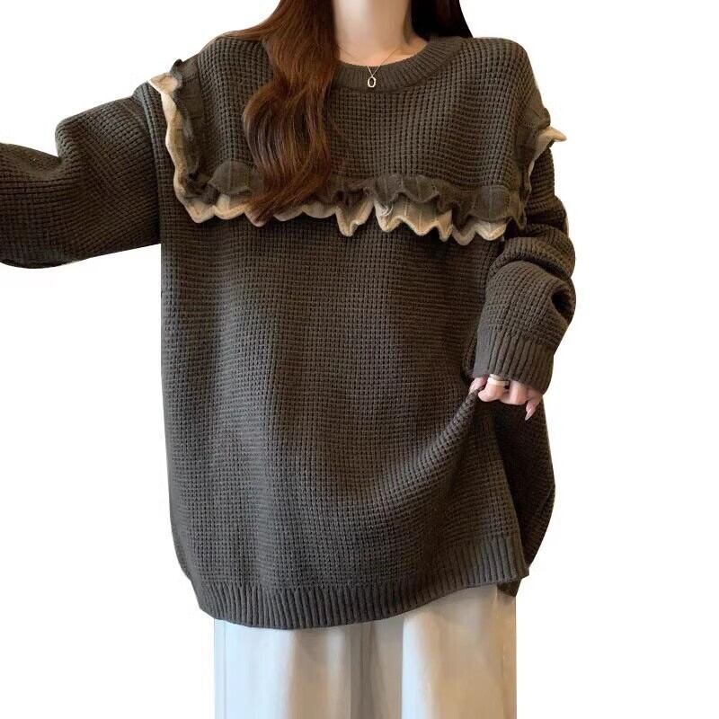 大きいサイズの秋のハイエンド感覚ゆるい怠惰なスタイルのミッドレングススリムセーター女性、脂肪ミリメートル厚みのあるセータートップトレンディ 大きめサイズ オータム 秋物 8884127195552561