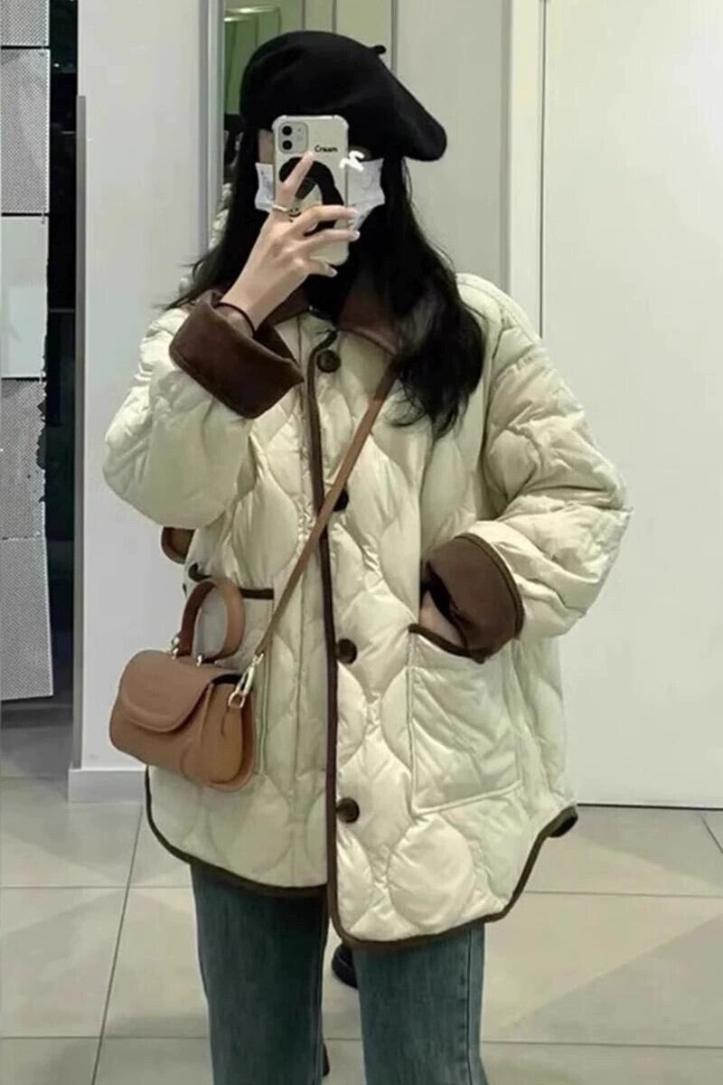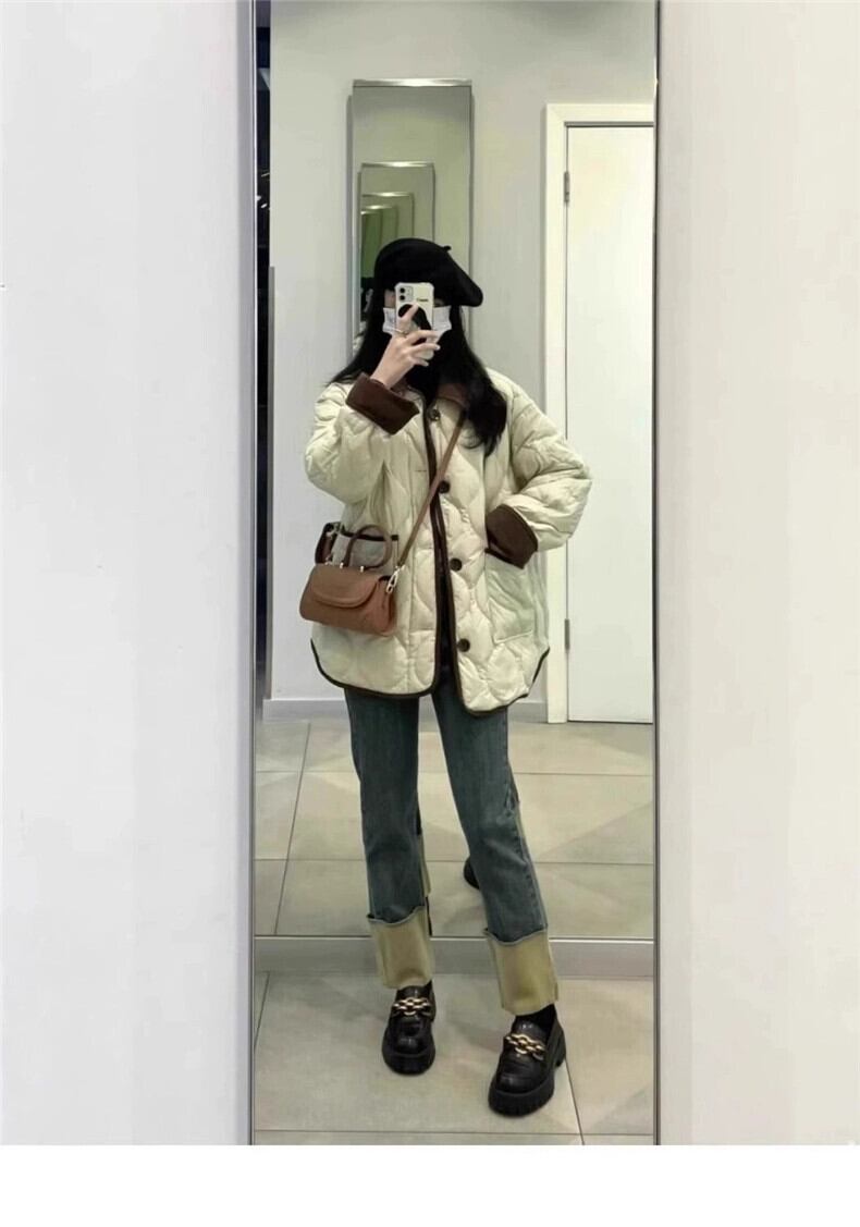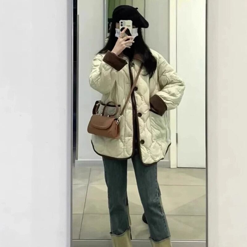 冬の大きいサイズのレトロな菱形のスプライシングダウンジャケットの女性、ファットMM、高級感のあるゆったりとした厚みのある暖かい綿のジャケット コットン 大きめサイズ ウィンター 冬物 8884163743666107