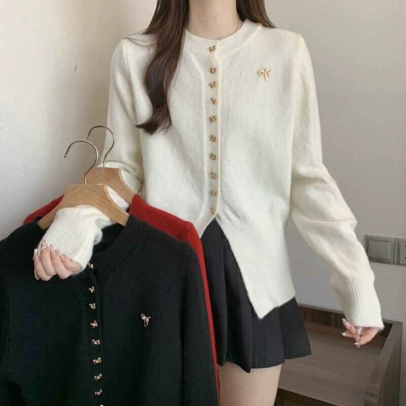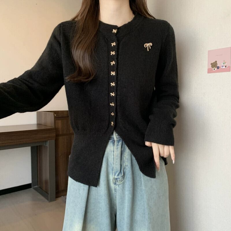 プラスサイズの婦人服 2023 冬の新ファットシスターメタルバタフライバックルニットカーディガンスリムセータージャケットトップ 大きめサイズ ウィンター 冬物 8884135060116101