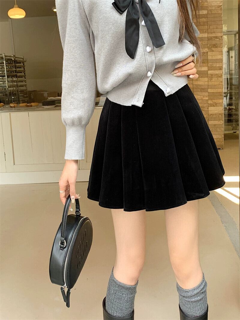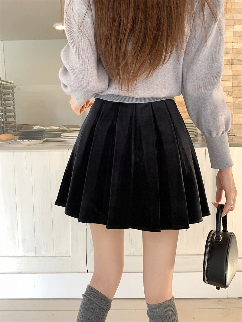 -秋冬のウエストAラインベルベットスカートの女性、大きいサイズ、少し太いmm、スリムなプリーツスカート、新しい気質のショートスカート 大きめサイズ オータム 秋物 ウィンター 冬物 8884150324306912