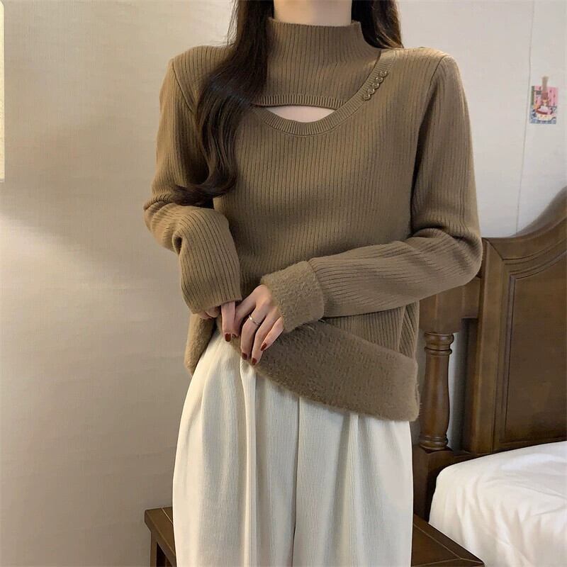 プラスサイズの女性の脂肪 mm ファッショナブルなインナー中空セーター冬の新 2023 多目的腹カバーボトリングトップ 大きめサイズ ウィンター 冬物 8884189430971851