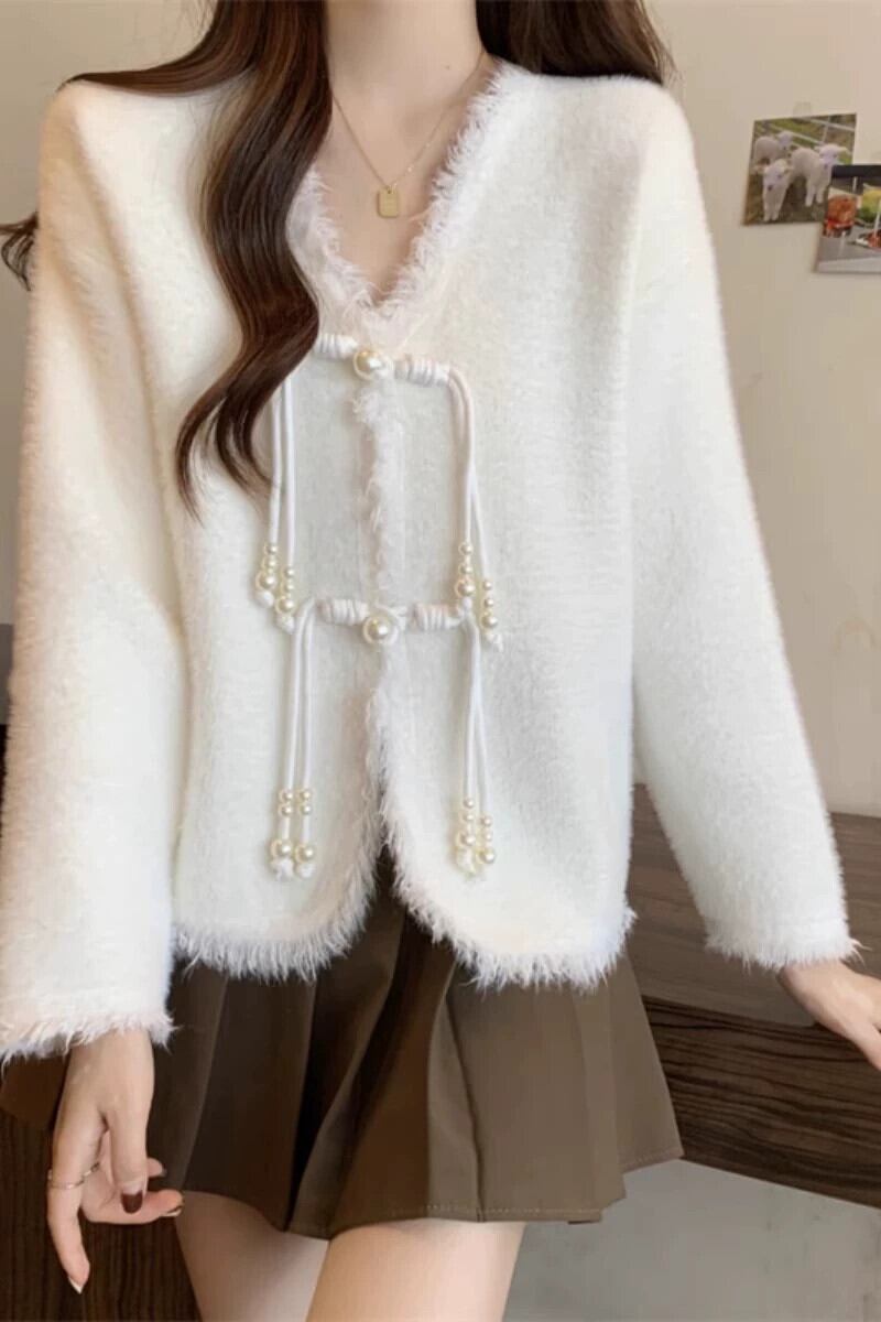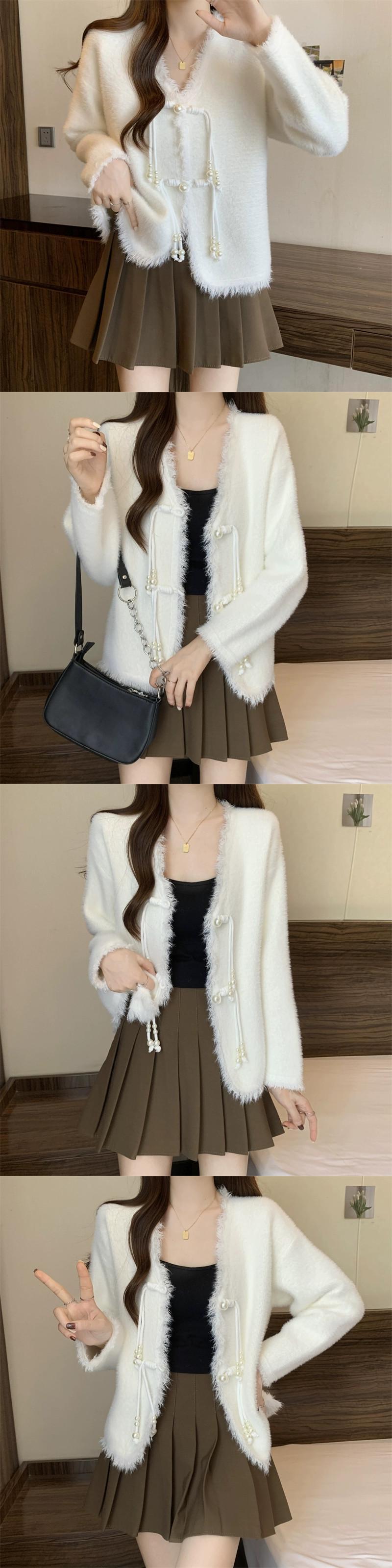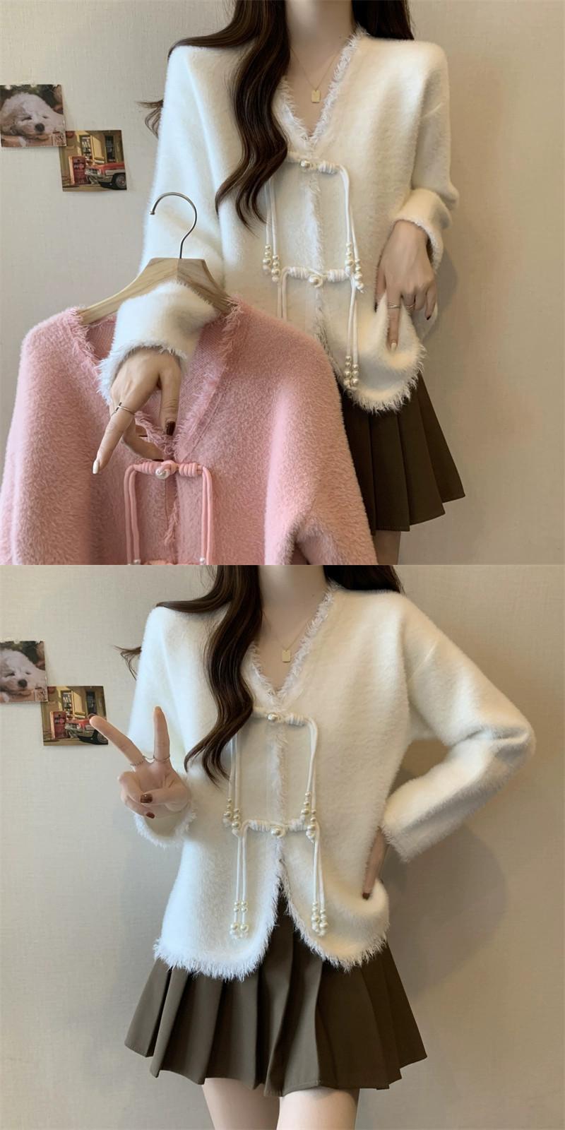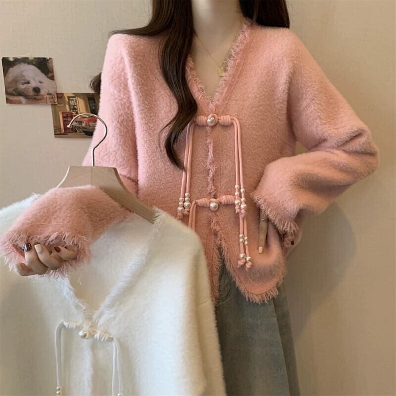大きいサイズ 2023 秋冬新スタイルファットシスターレディース長袖新中国風プレートボタン V ネックデザインカーディガンセータートレンディ ロング 大きめサイズ オータム 秋物 ウィンター 冬物 Vネック 8884197071060755