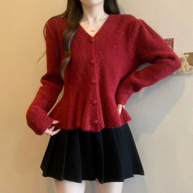 プラスサイズの女性の 2023 秋と冬の新デザインニットカーディガンジャケット脂肪 mm スリムウエスト肥厚セータートップ 大きめサイズ オータム 秋物 ウィンター 冬物 8884138094446889