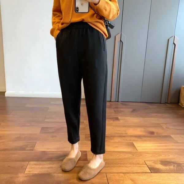 大きいサイズ冬肥厚プラスベルベットソフト痩身カジュアルスウェットパンツハーレムパンツニンジンパンツ拘束なし超暖かい女性 大きめサイズ ウィンター 冬物 8884136786638118