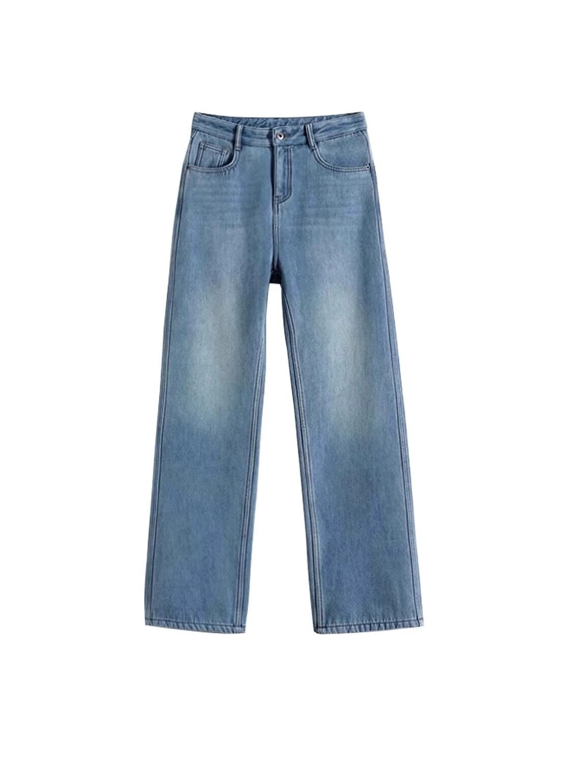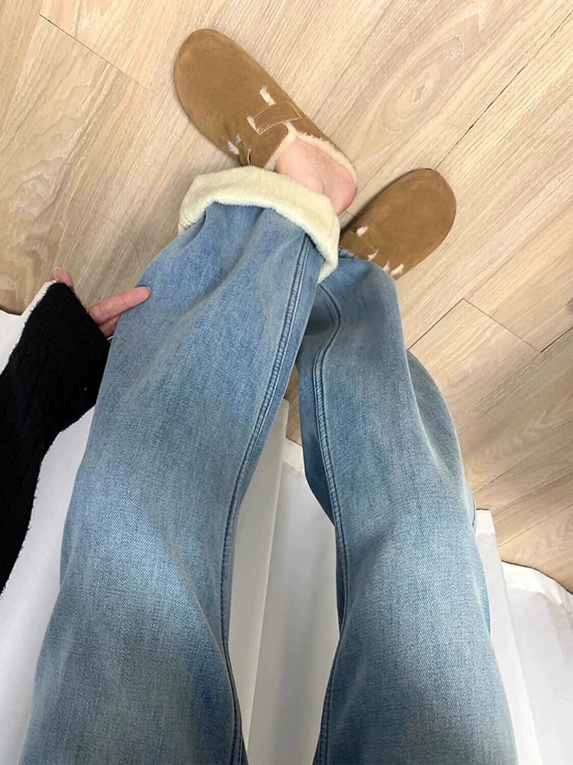 大きいサイズのベルベット肥厚ストレートジーンズ女性の秋と冬のハイウエストストレートパンツ脂肪MMルーズ痩身ワイドレッグパンツトレンディ ハイウェスト 大きめサイズ オータム 秋物 ウィンター 冬物 ワイドパンツ 8884198101603489