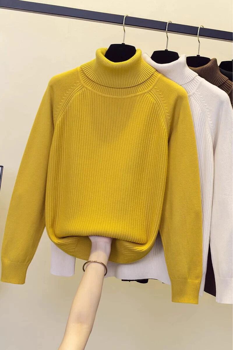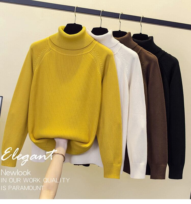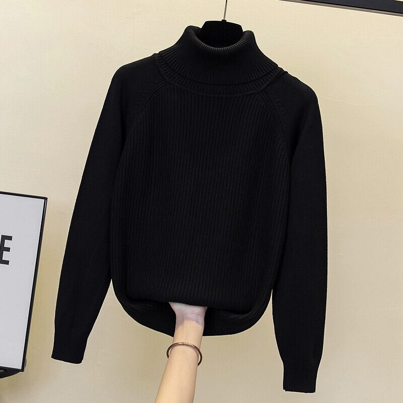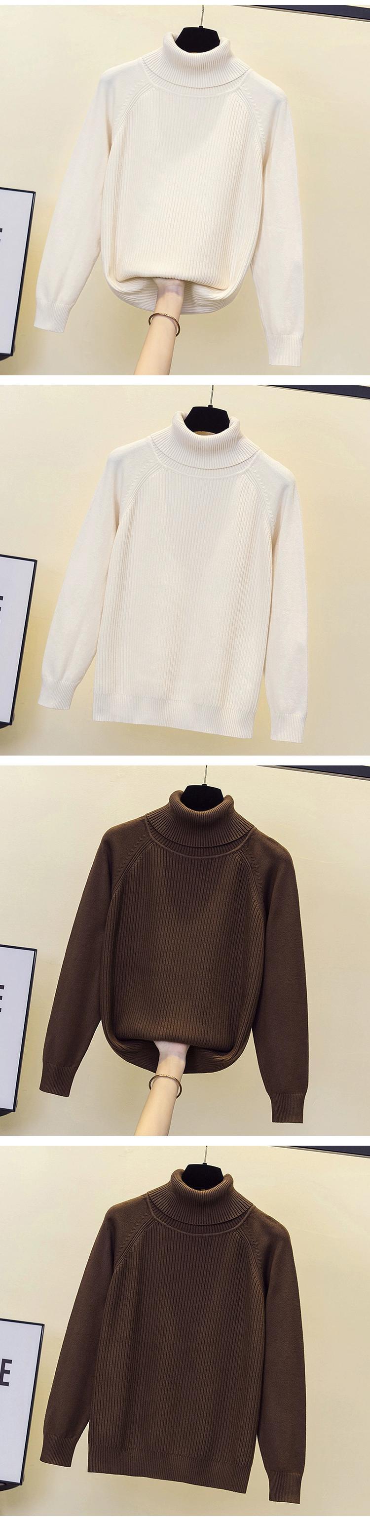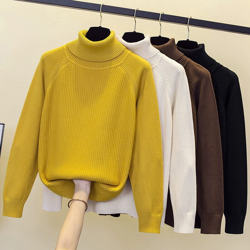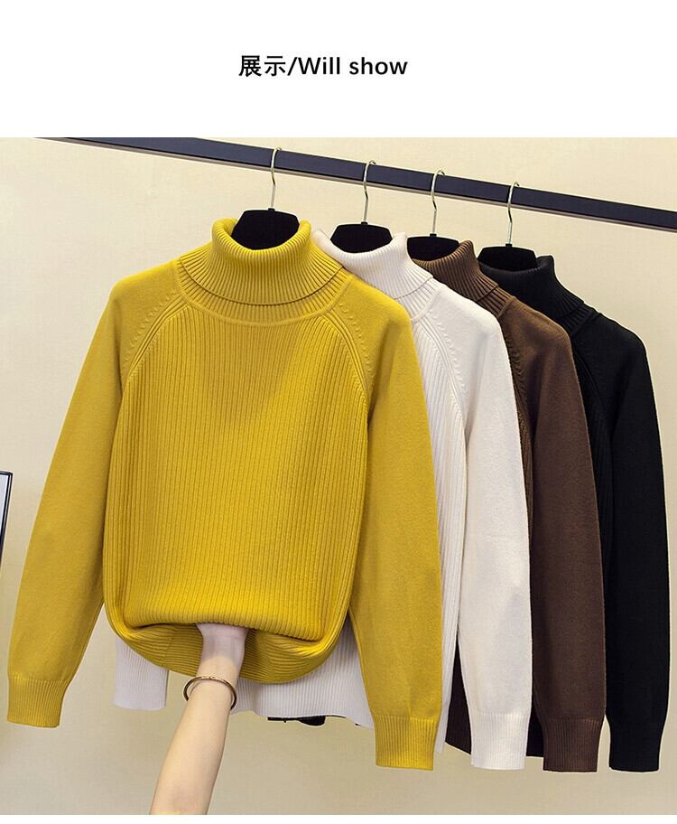 プラスサイズの女性の秋と冬の新しいスタイルのニットセーターハイカラー長袖トップわずかに脂肪ルーズ痩身ボトミングシャツセーター ロング 大きめサイズ オータム 秋物 ウィンター 冬物 8884190739531747