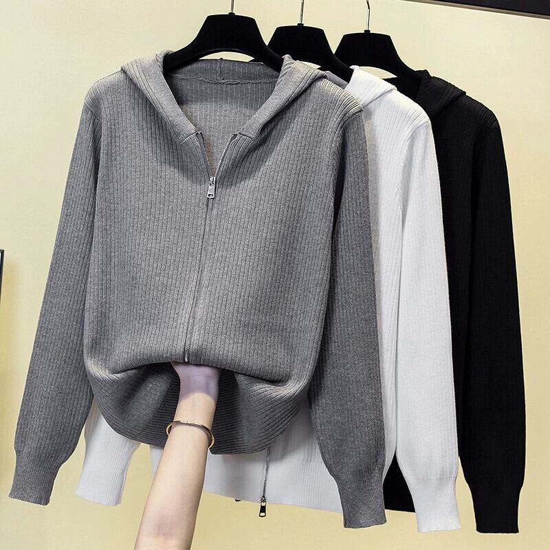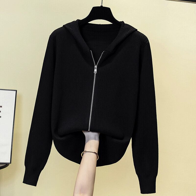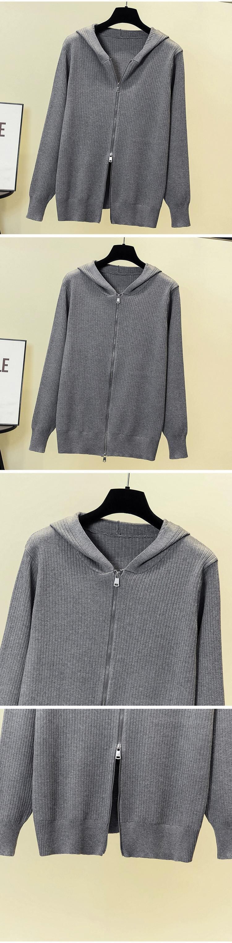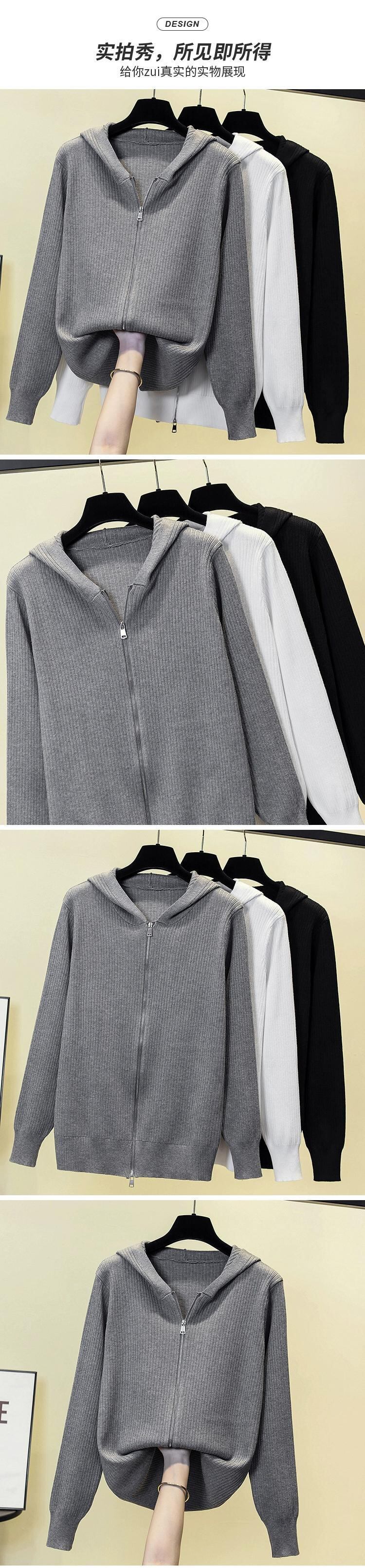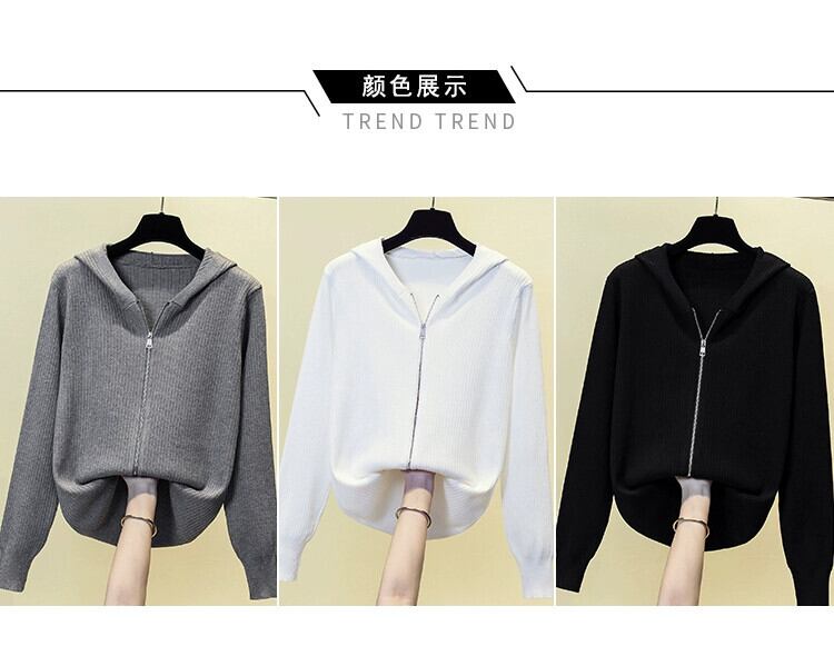 プラスサイズの女性のセーター女性の 2023 新しいカーディガンジャケットフード付き長袖トップファット MM ルーズカジュアルジッパー ロング 大きめサイズ 8884172838710795