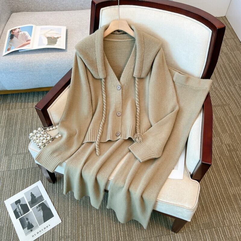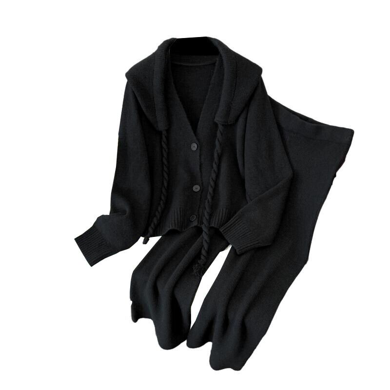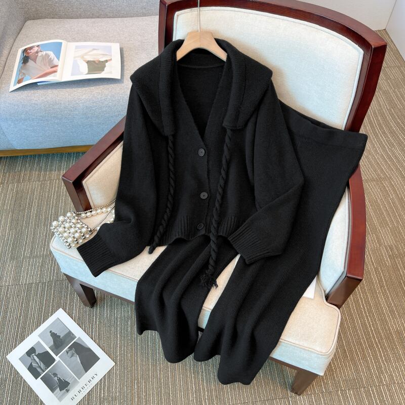 プラスサイズの婦人服脂肪 mm 秋の新スタイル 2023 eign スタイルカジュアルニット取り外し可能なフード付きカーディガンワイドレッグパンツスーツ 大きめサイズ オータム 秋物 ワイドパンツ 8884125621682761