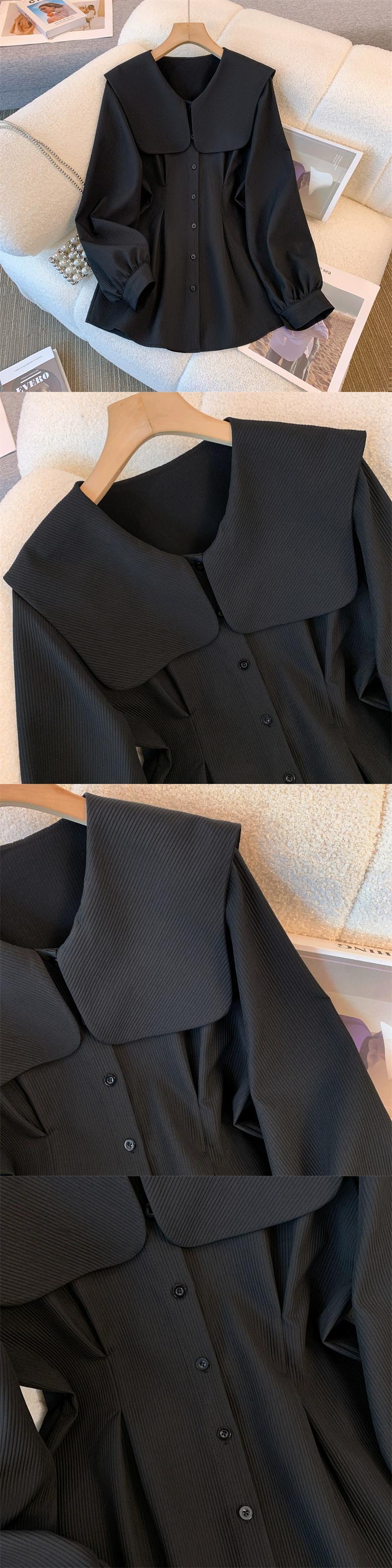シャツ女性プラスサイズ 2023 秋と冬の新しいファットシスタードールカラー長袖無地ファッショナブルでシックなシングルブレストシャツ ロング 大きめサイズ オータム 秋物 ウィンター 冬物 ソリッドカラー 8884131767184061