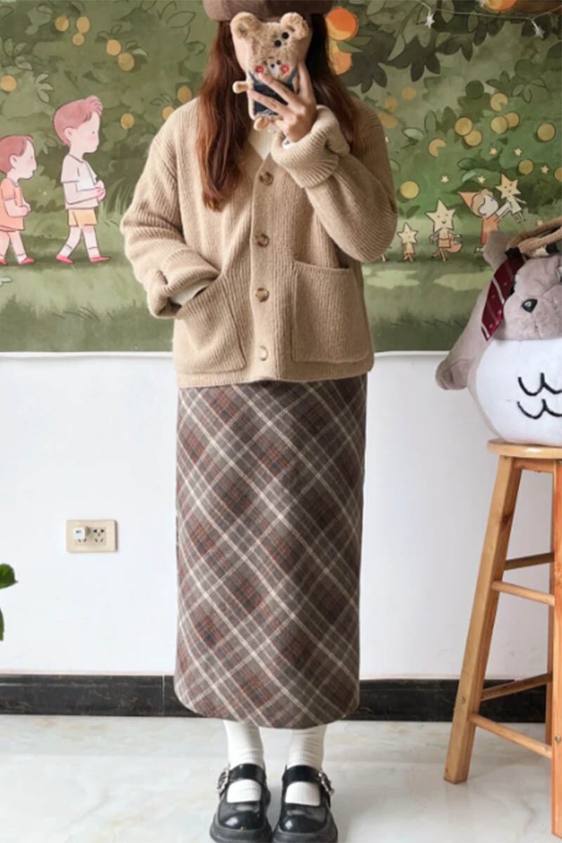 大きいサイズのレトロなチェック柄ウールスカート秋と冬の新しいヒップカバー A ラインスカート脂肪ミリメートルハイウエストスリムショートスカート女性 ハイウェスト 大きめサイズ オータム 秋物 ウィンター 冬物 Aライン 8884174908788643