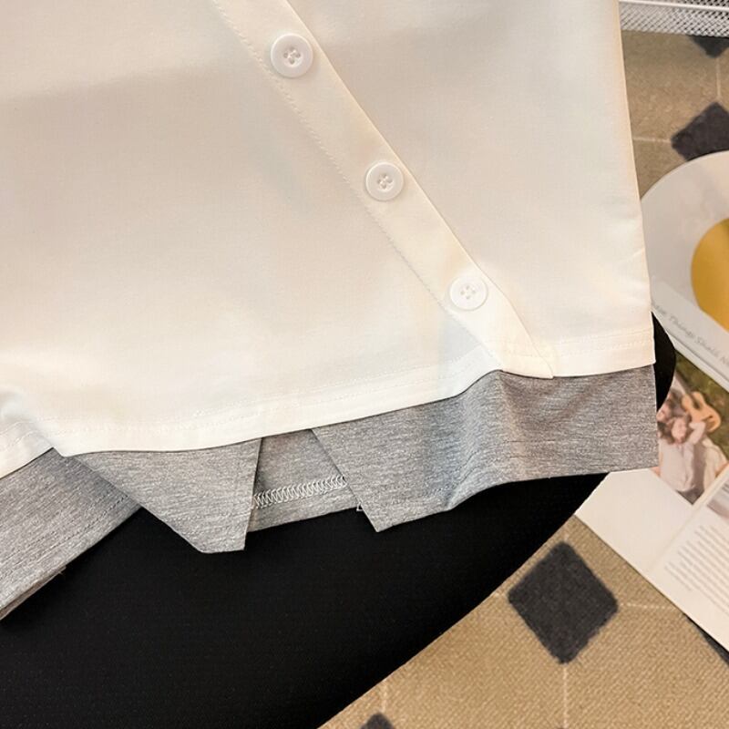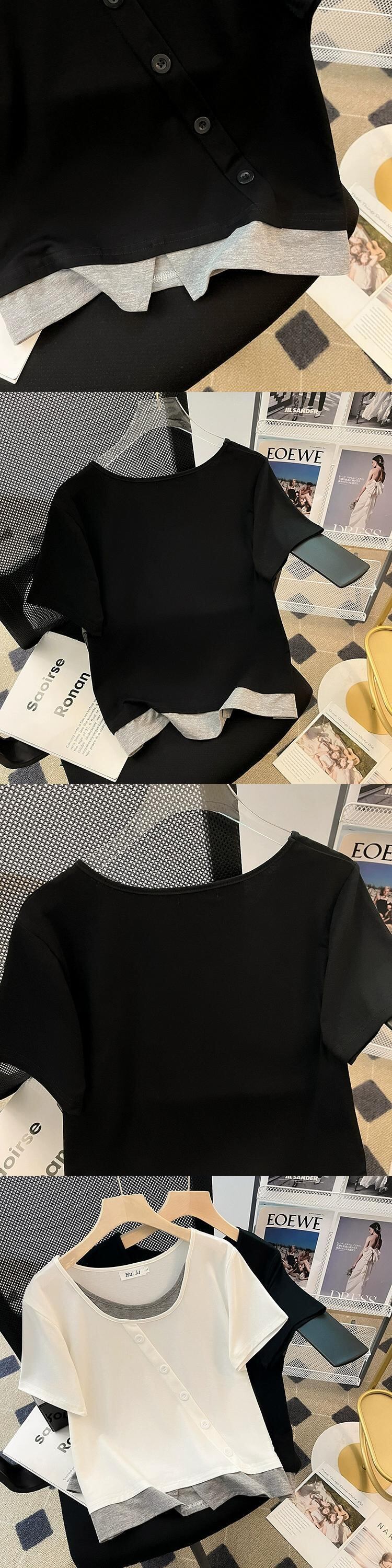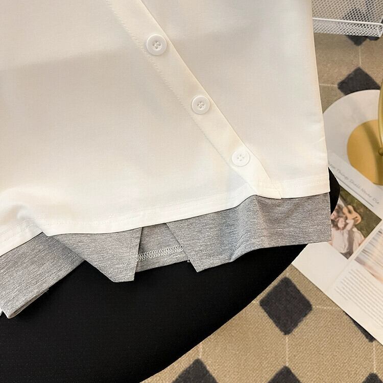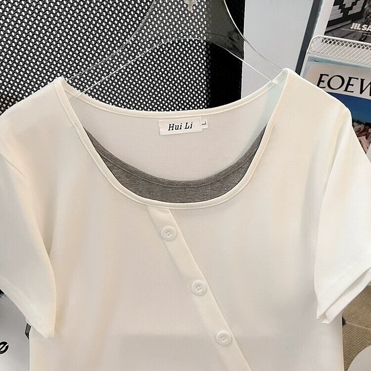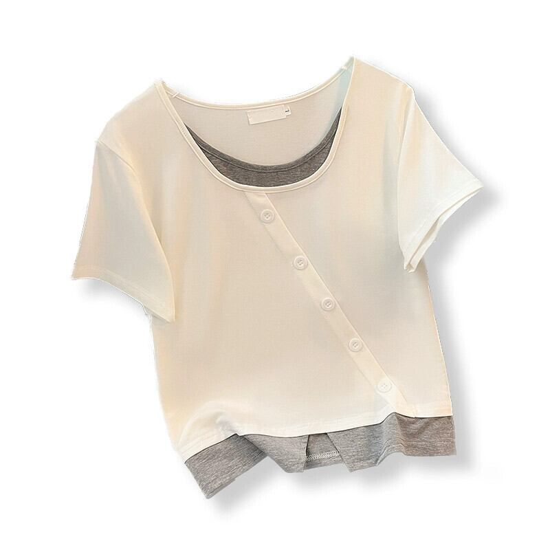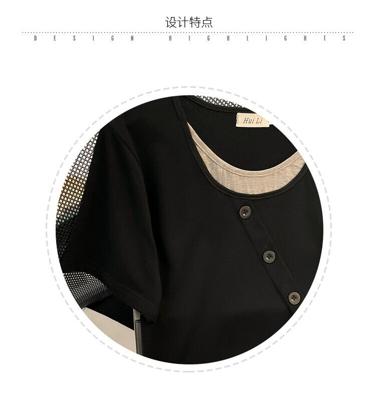 プラスサイズの女性の 2023 夏の新しいスタイルの脂肪姉妹スプライシング偽ツーピースルーズ痩身多目的半袖トップス女性 大きめサイズ サマー 夏物 8884181425039730
