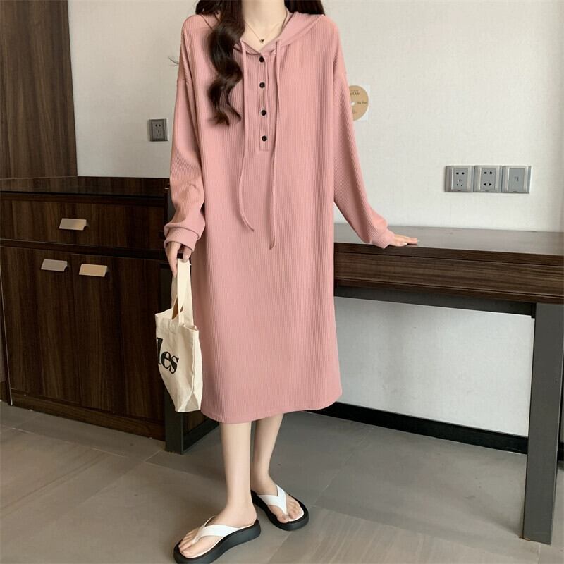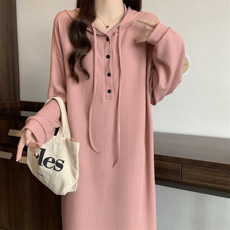 プラスサイズの女性の秋の新ソリッドカラーのフード付きスウェットシャツスカート脂肪mmカジュアルスリムルーズaラインニットドレス 大きめサイズ オータム 秋物 8884182741738043