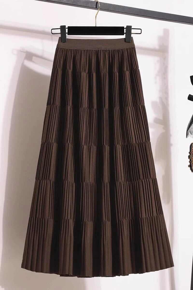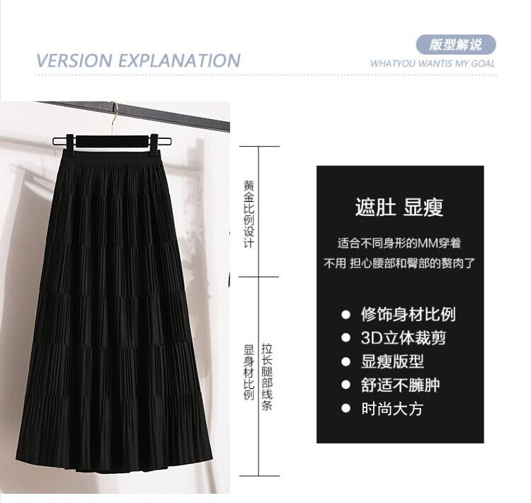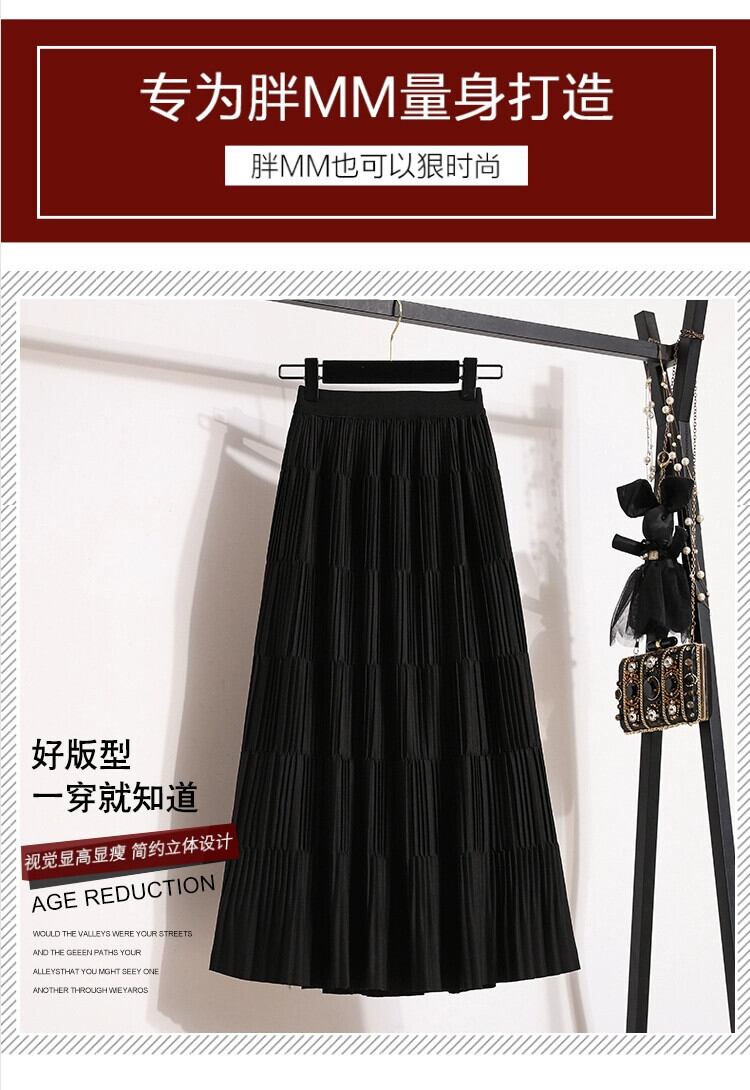 プラスサイズの婦人服 2023 秋と冬の新脂肪ミリメートルカジュアル痩身ファッションプリーツ弾性ウエストカバーハーフスカート エラスティック 伸縮 大きめサイズ オータム 秋物 ウィンター 冬物 8884154352421322