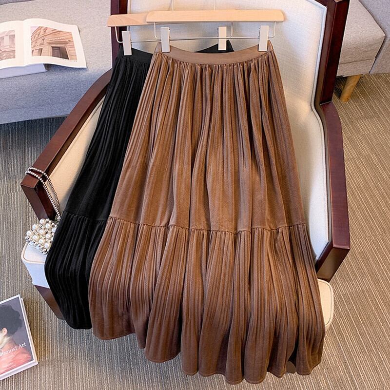 プラスサイズの女性の 2023 秋冬新作カジュアル多目的 A ラインスカートファッショナブルなハイウエストスリムミドル丈プリーツスカート 大きめサイズ オータム 秋物 ウィンター 冬物 Aライン 8884165512280449