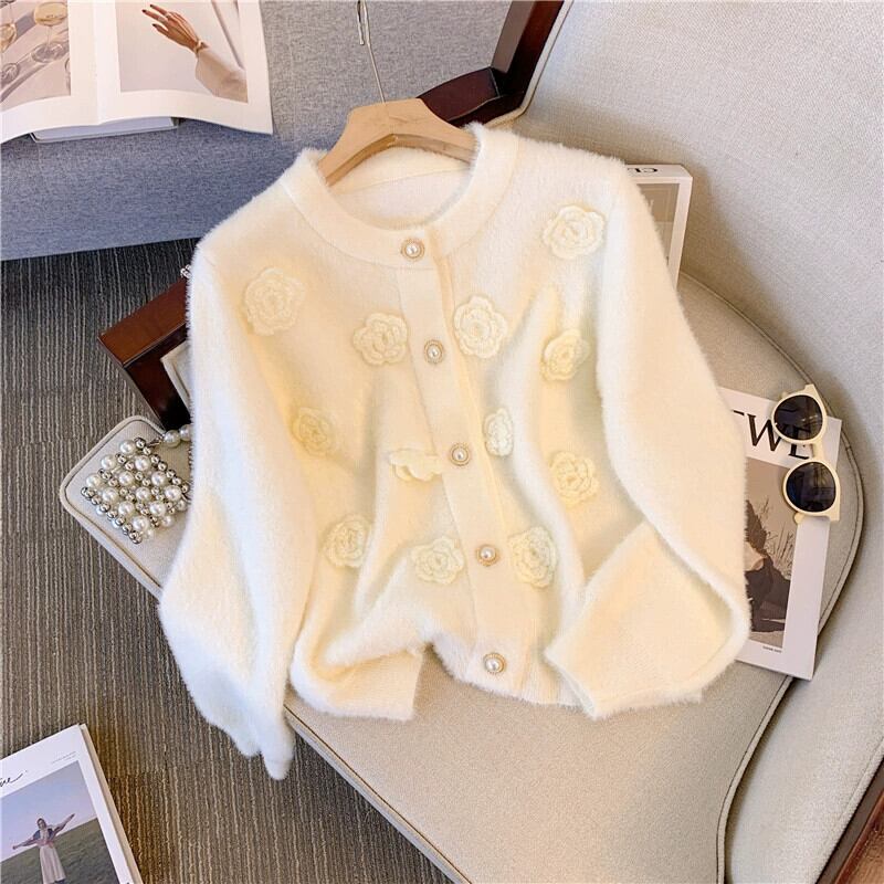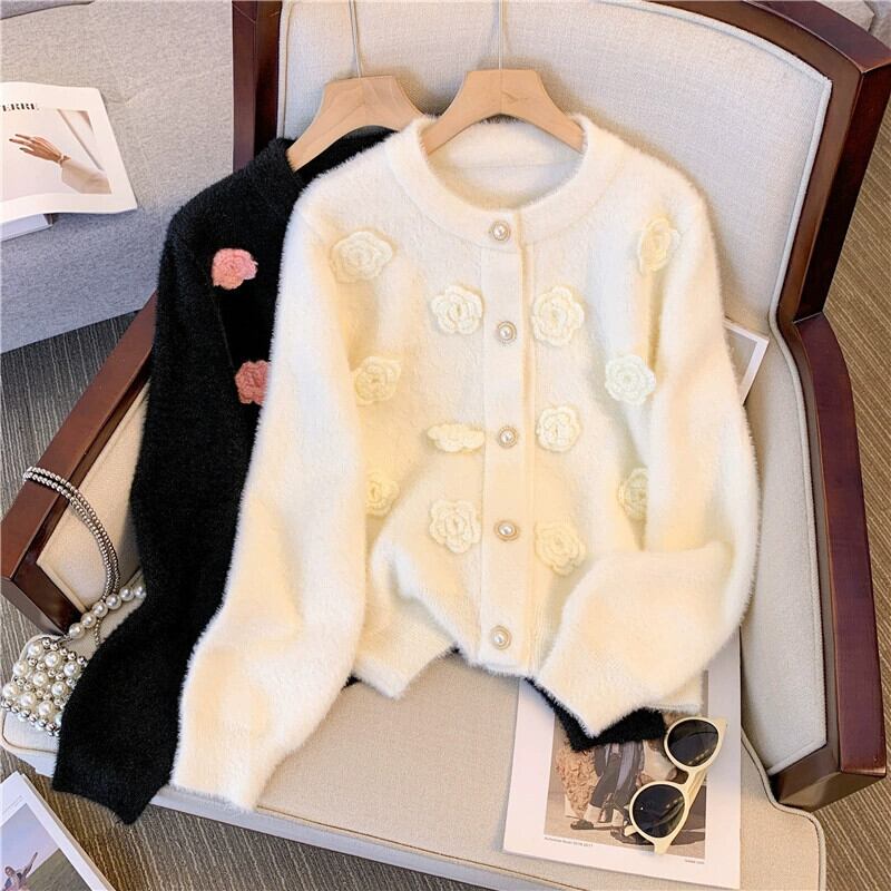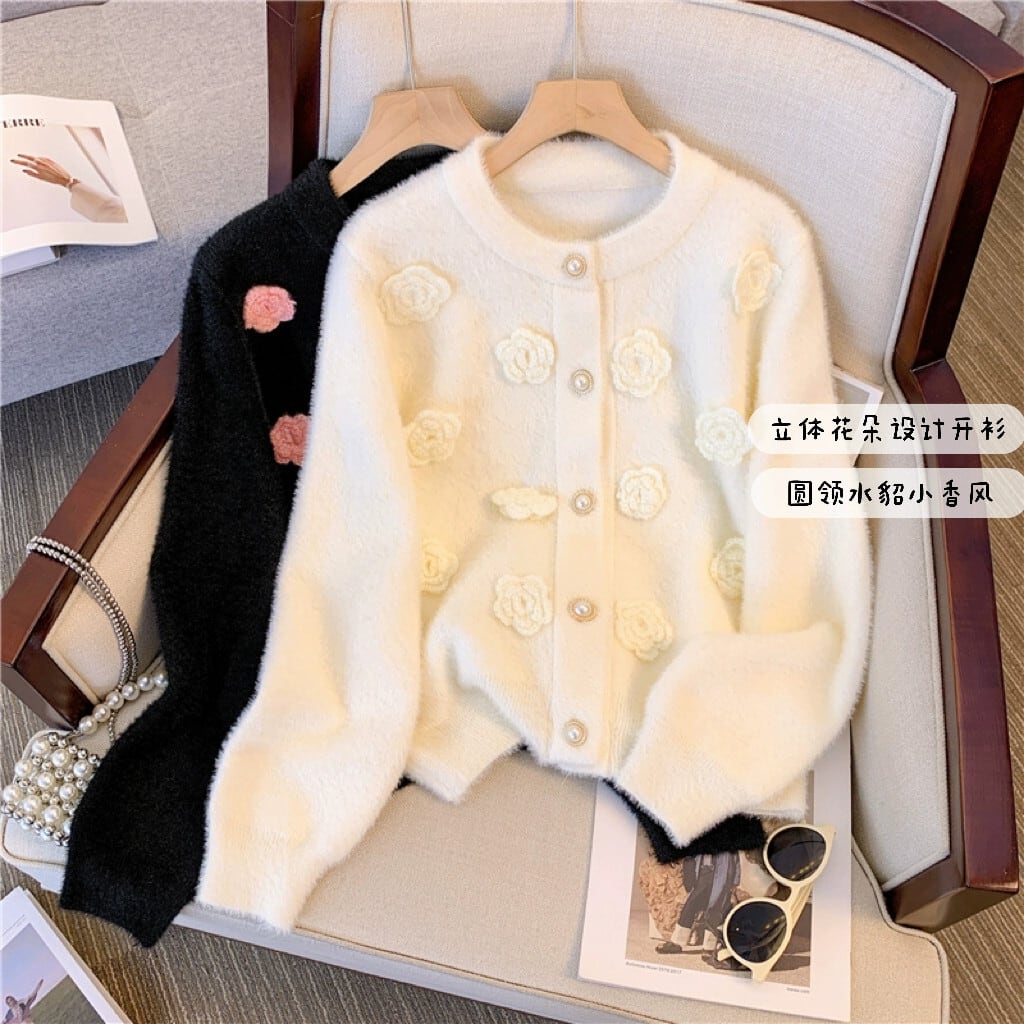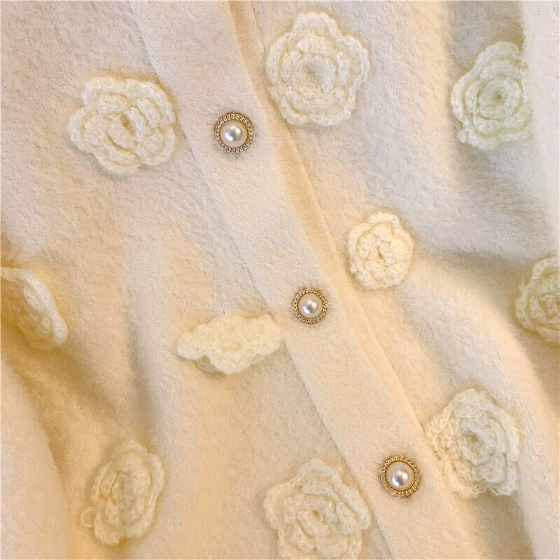 大きいサイズの女性の立体花ニットカーディガン 2023 秋冬新デザイン長袖カーディガンセータージャケットトレンディな ロング 大きめサイズ オータム 秋物 ウィンター 冬物 フラワーデザイン 8884156284951723