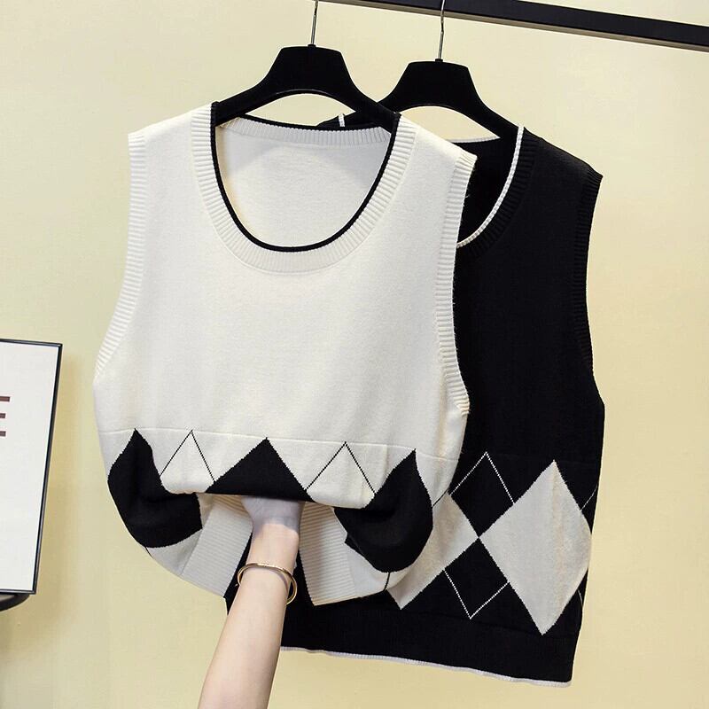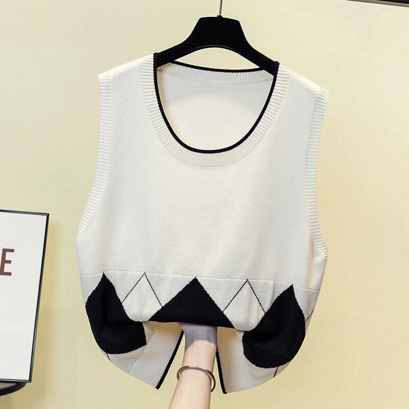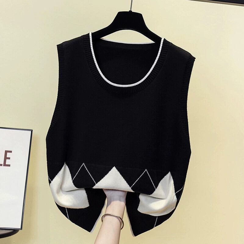 大きいサイズ 2023 秋冬新作ファットシスター レディース ラウンドネック ノースリーブ ゆったり 万能 万能 スリム デザイン ニットベスト 大きめサイズ オータム 秋物 ウィンター 冬物 Oネック 8884178020559583