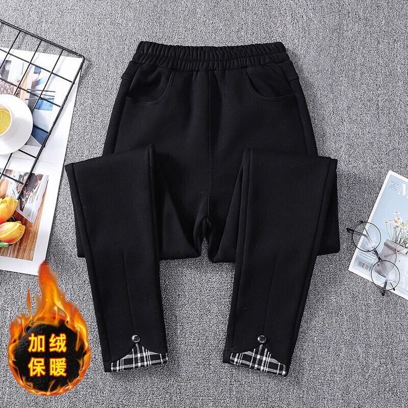プラスサイズの女性の新しい冬ストレッチレッグパンツ太った女性が着用できるプラスベルベットと肥厚スタイルの弾性ウエストハーレムパンツトレンディ エラスティック 伸縮 大きめサイズ ウィンター 冬物 8884176384230198