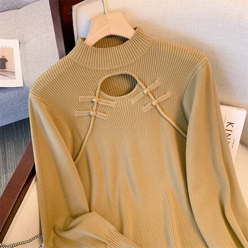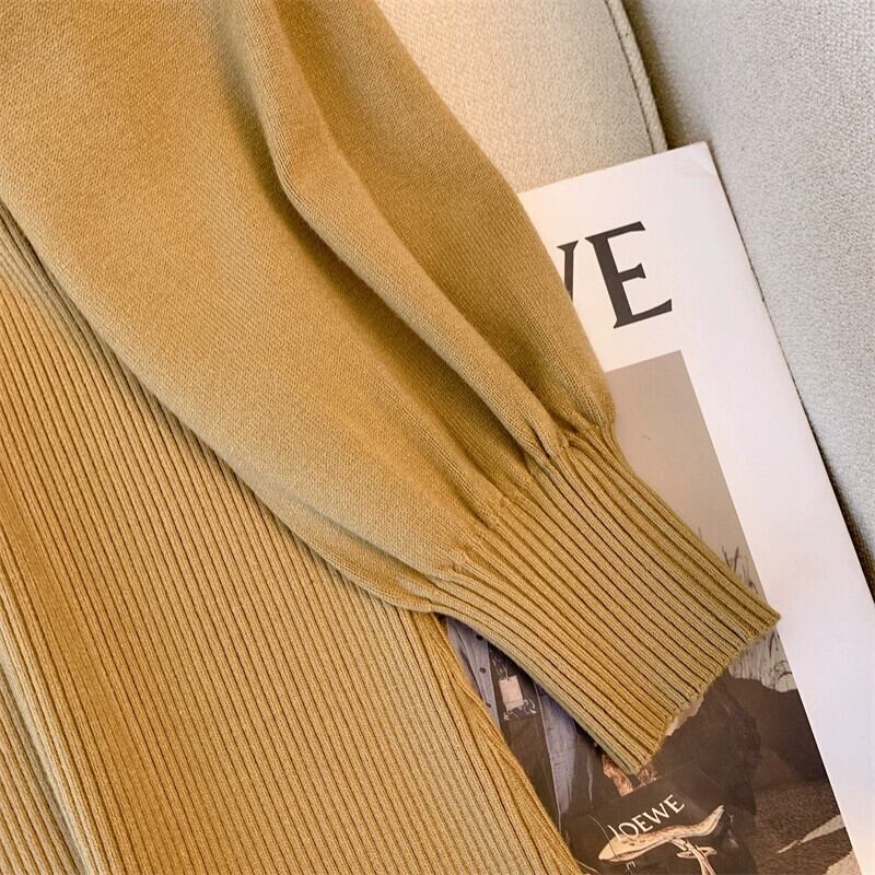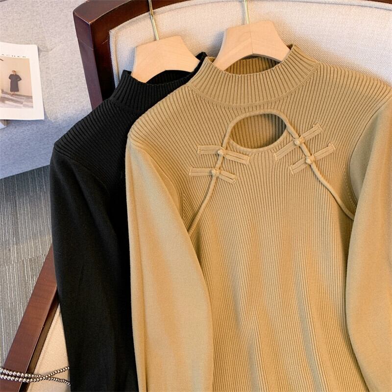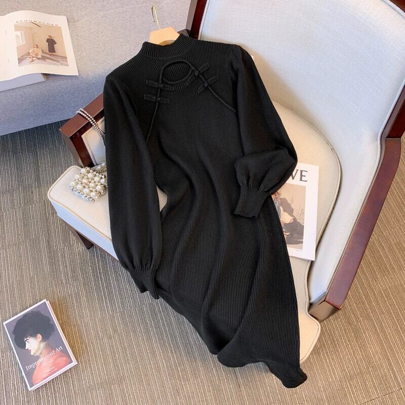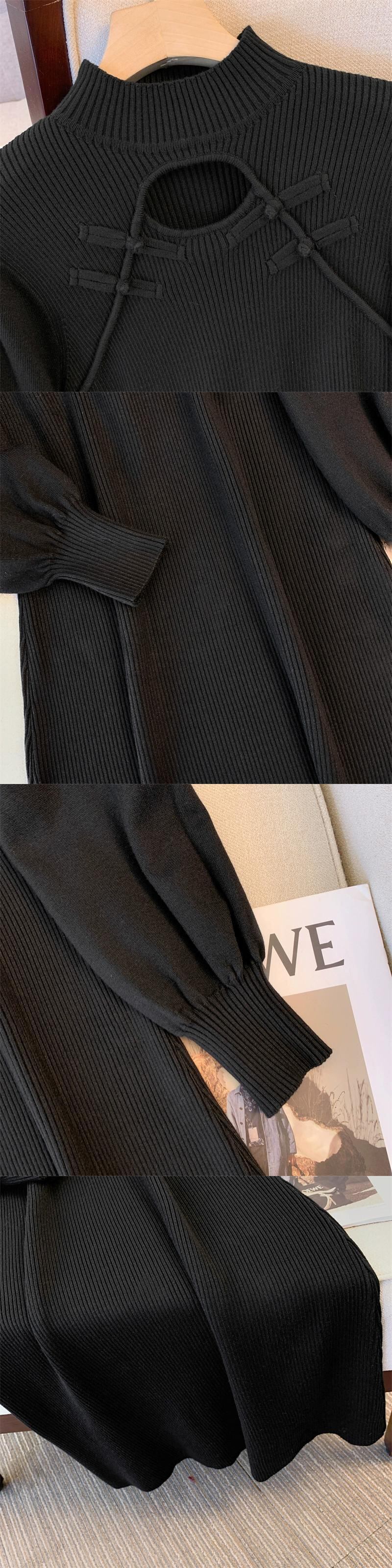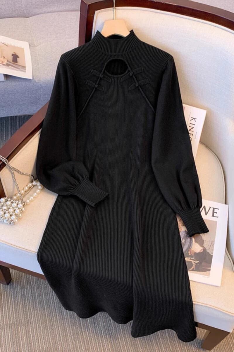 プラスサイズの婦人服ファットミリメートル秋冬 2023 新しいプレートボタン中空ニットドレスハーフハイカラー長袖ボトシャツドレス ロング 大きめサイズ オータム 秋物 ウィンター 冬物 8884142330968141