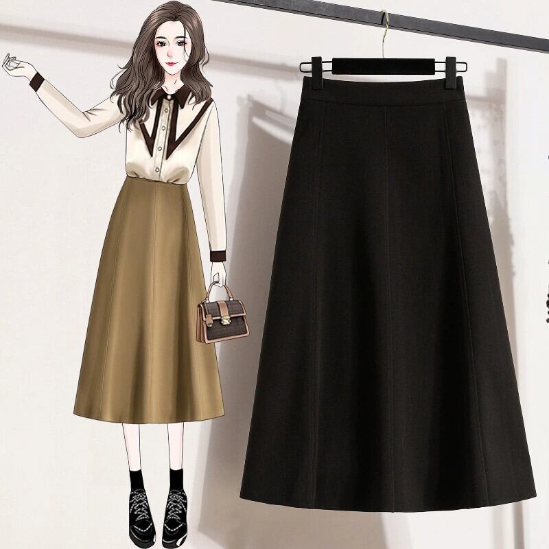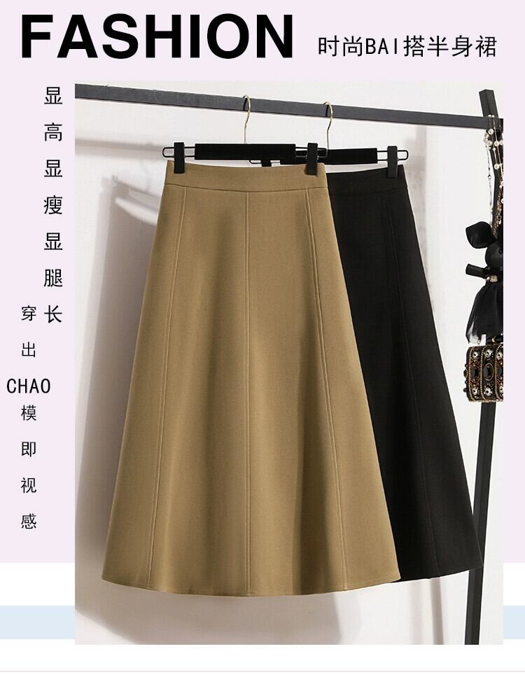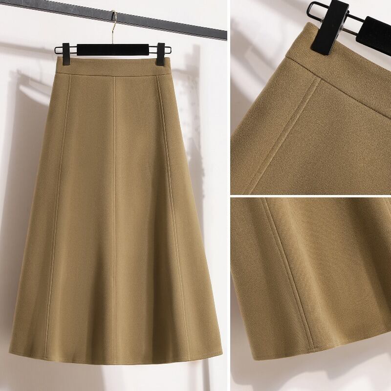 プラスサイズの秋の新女性のミドル丈ウールスカート脂肪ミリメートル洋ナシ型フィギュアスカートハイウエストスリムスカート ハイウェスト 大きめサイズ オータム 秋物 8884197067746241