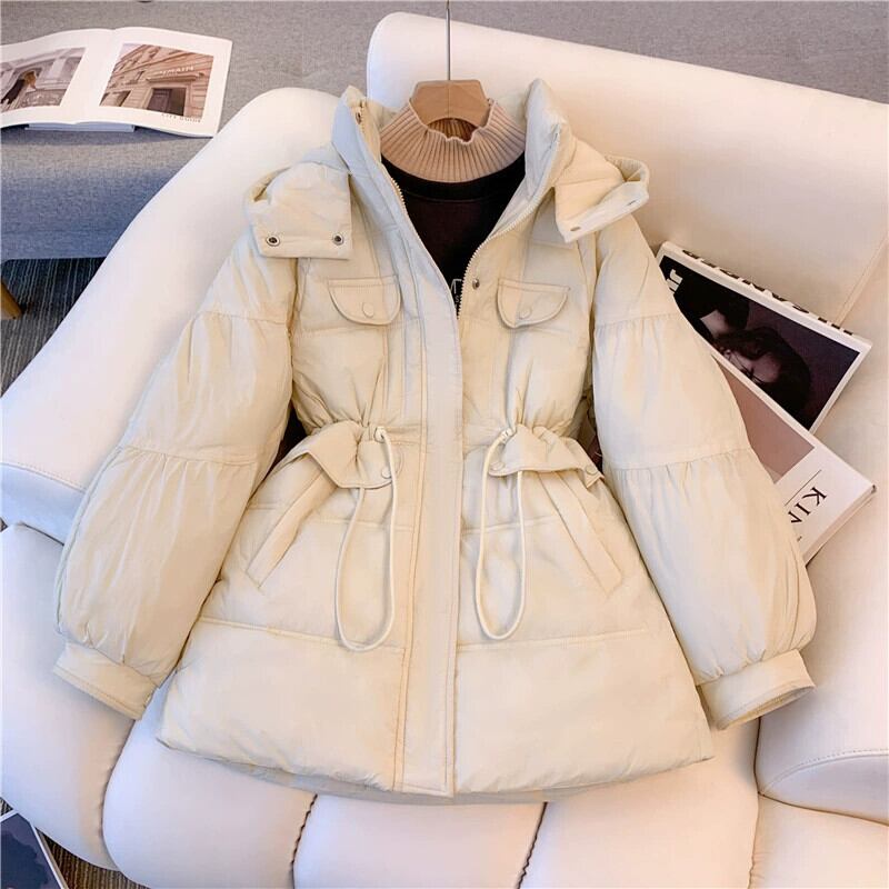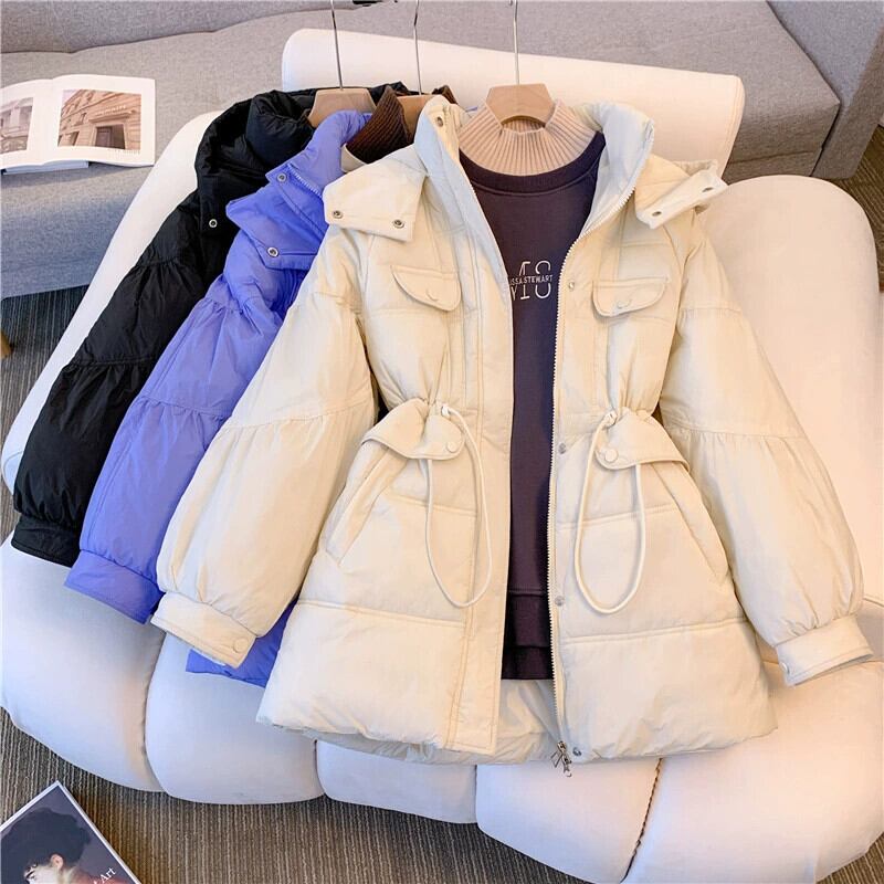 大きいサイズ 2023 冬の新ファットシスター女性のフード付き長袖無地ジッパーウエストファッションダウンジャケットトレンディな ロング 大きめサイズ ウィンター 冬物 ソリッドカラー 8884165655945477