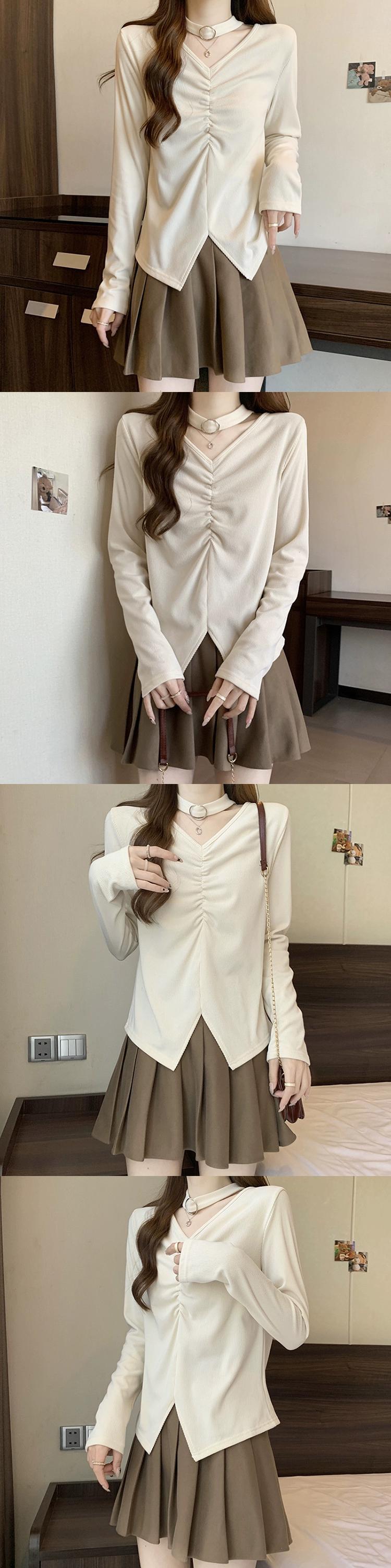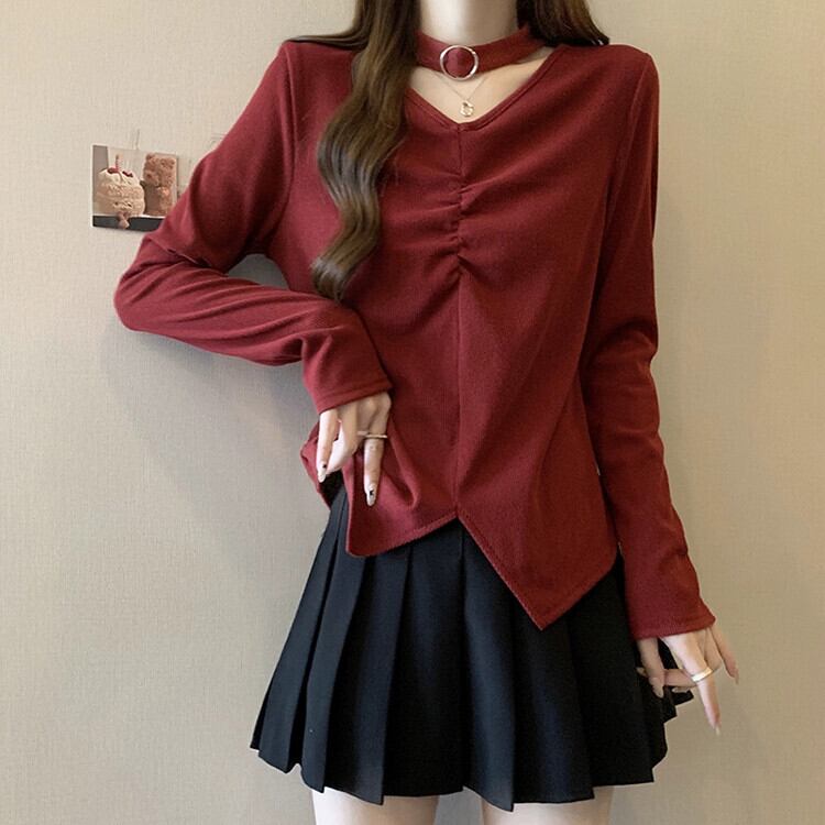 プラスサイズの婦人服ファット mm 秋と冬の新スタイル 2023 アメリカンレトロ老化トップス多目的痩身肌カバーソリッドカラー T シャツ 大きめサイズ オータム 秋物 ウィンター 冬物 Tシャツ 8884117861048369