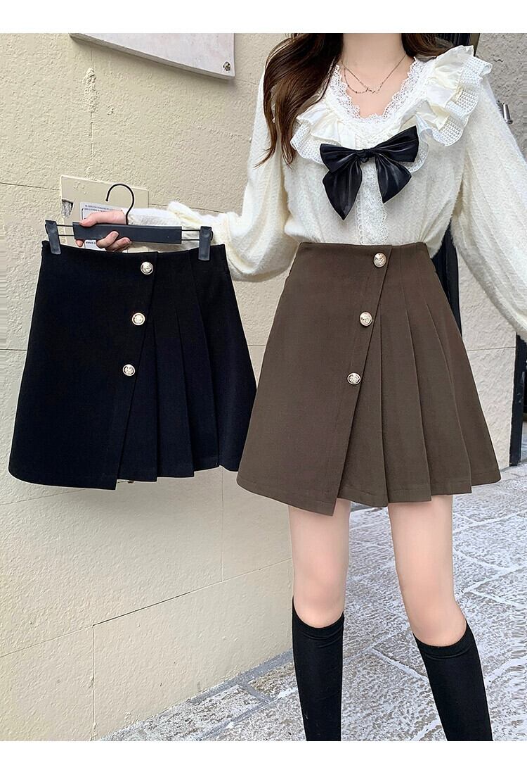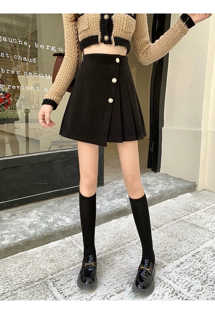 プラスサイズの女性の 2023 冬の新スタイルファット mm 非対称プリーツ A ラインスカートハイウエストスリム多目的スカート ハイウェスト 大きめサイズ ウィンター 冬物 Aライン 8884186617882801