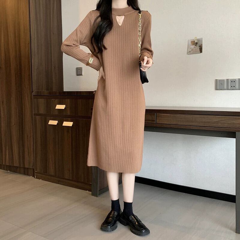 プラスサイズの婦人服ファットmm秋冬新スタイル2023ルーズでスリムなニットaラインスカートデザインフレンチドレストレンディ 大きめサイズ オータム 秋物 ウィンター 冬物 8884146560465932