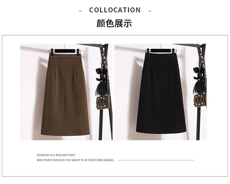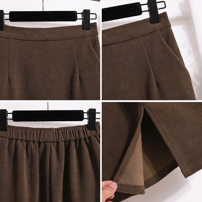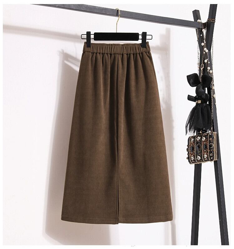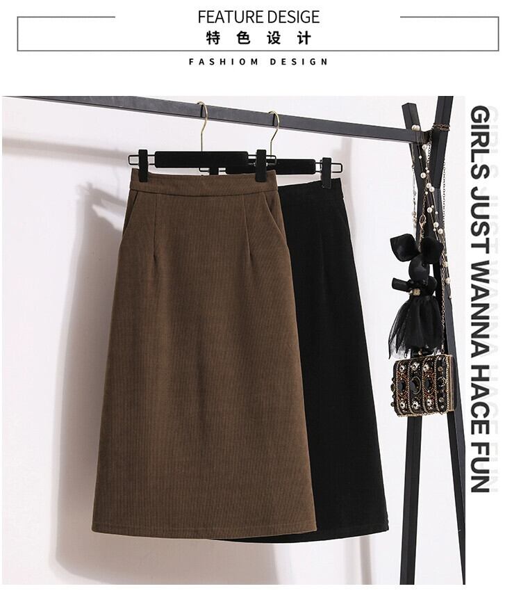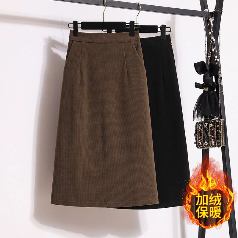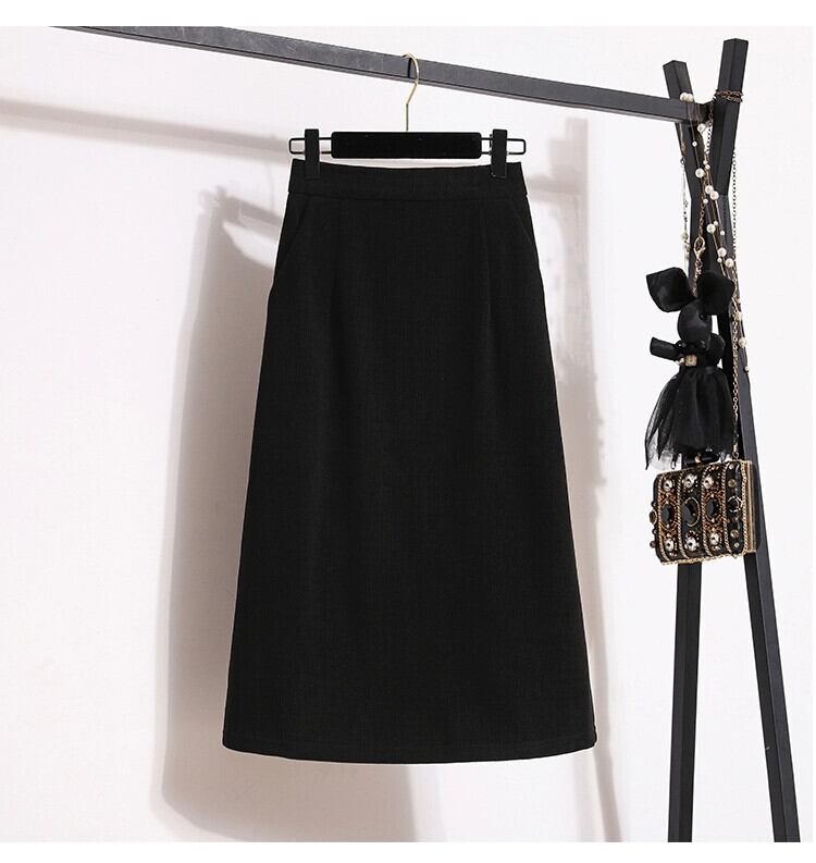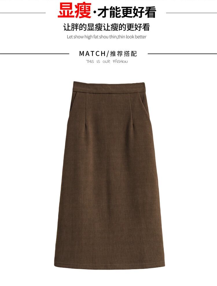 プラスサイズの婦人服 2023 秋冬新スタイルファットシスター多用途弾性ハイウエスト痩身 A ラインミドル丈スカートトレンディ ハイウェスト エラスティック 伸縮 大きめサイズ オータム 秋物 ウィンター 冬物 Aライン 8884138890812132
