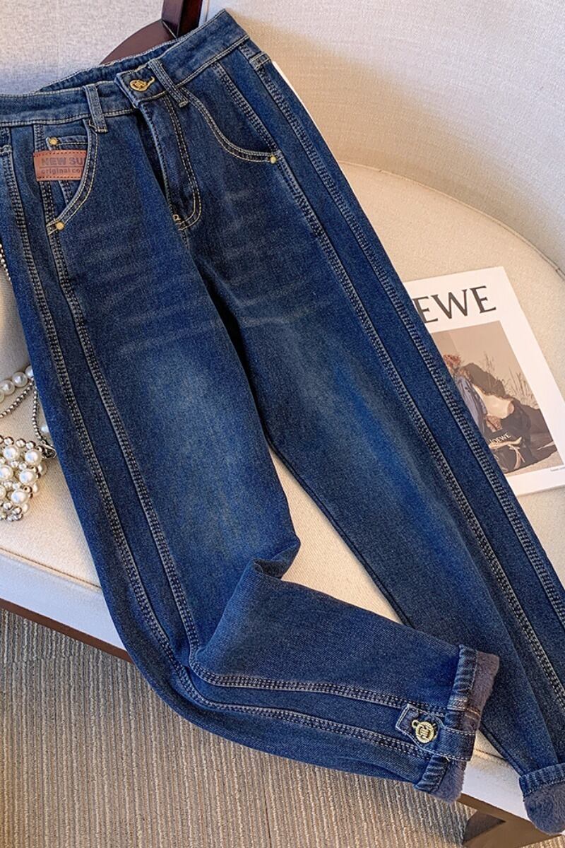 プラスサイズの女性のファット mm デザインカジュアルパンツ冬の新 2023 年齢を軽減ヒップカバー多用途デザインジーンズ 大きめサイズ ウィンター 冬物 8884171503597437