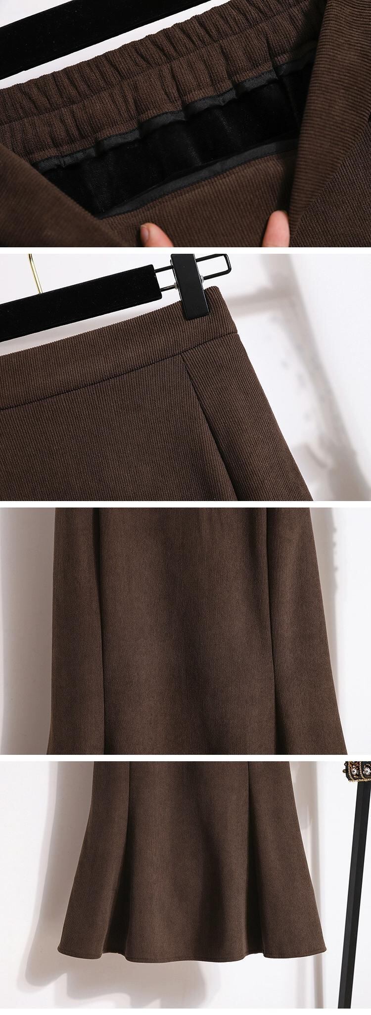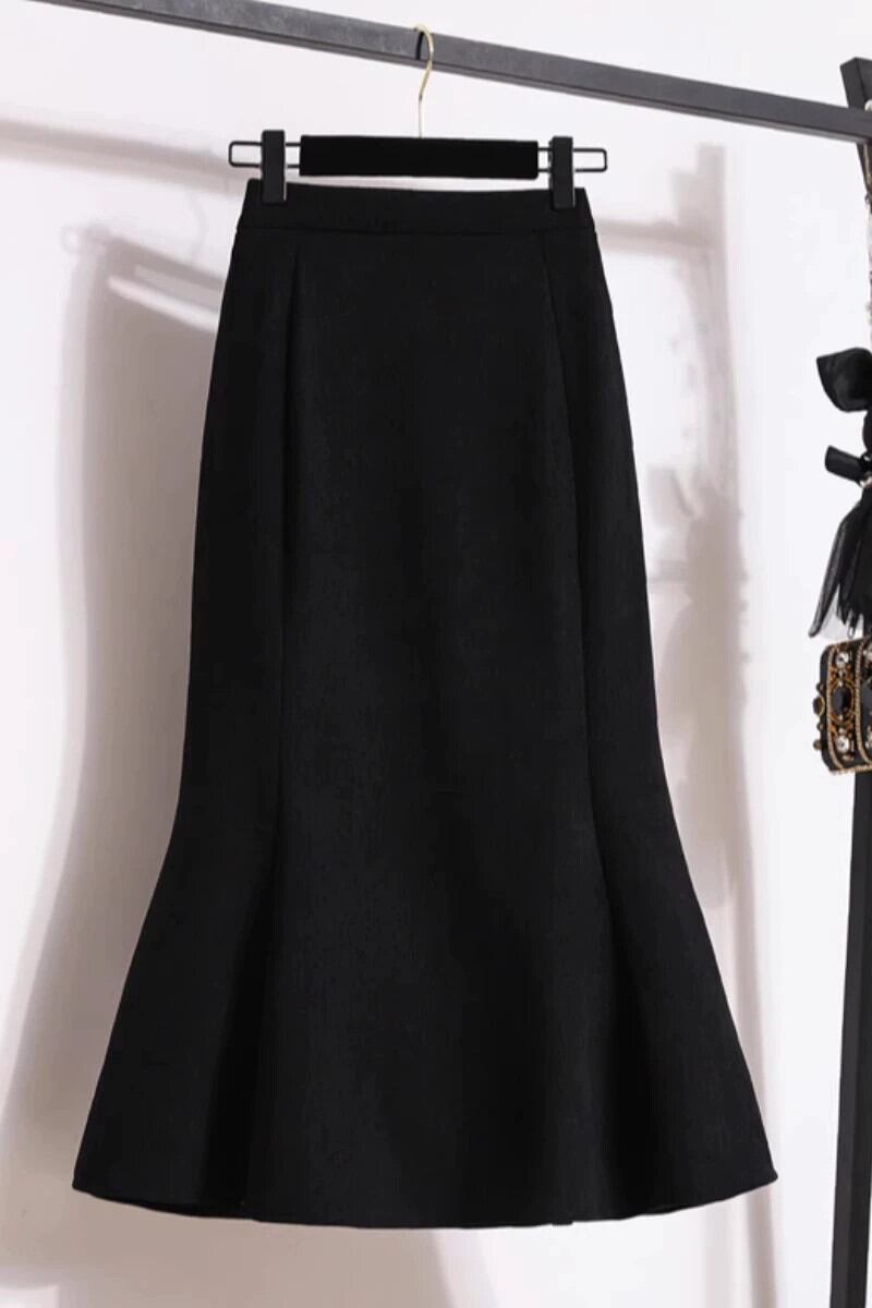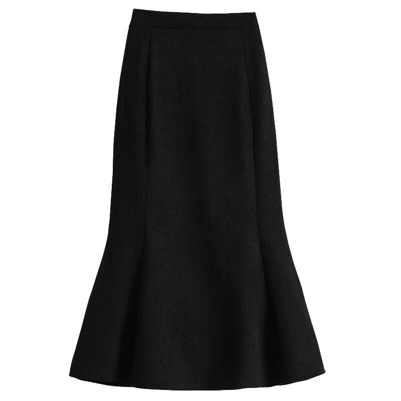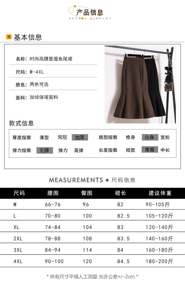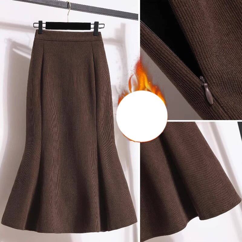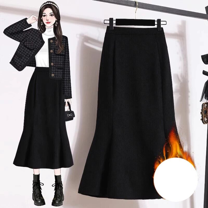 プラスサイズの女性の冬 2023 新しいベルベット肥厚フィッシュテールスカートハイウエストヒップスカートミッドレングス A ラインスカート ハイウェスト 大きめサイズ ウィンター 冬物 Aライン 8884157742688365