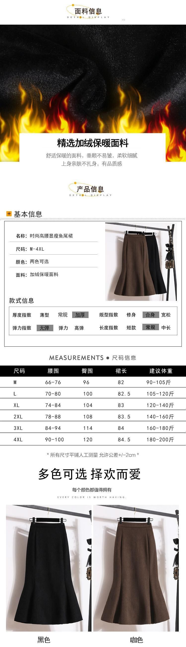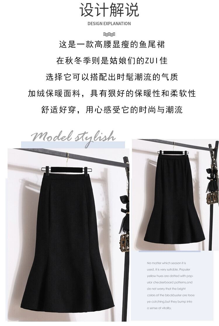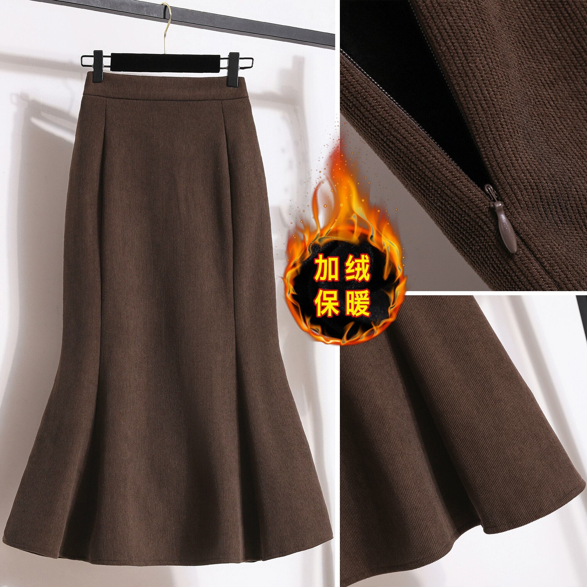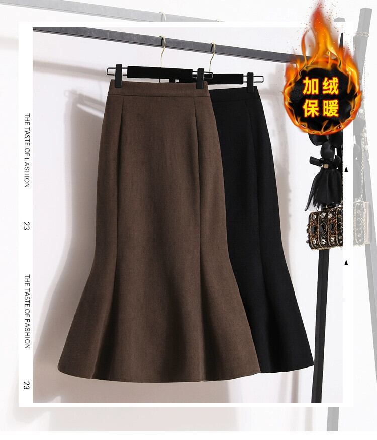 プラスサイズの女性の脂肪 mm 肥厚ハイウエストフィッシュテールスカート冬の新 2023 股カバー無地多用途年齢低減スカート 大きめサイズ ウィンター 冬物 ソリッドカラー 8884139515007017