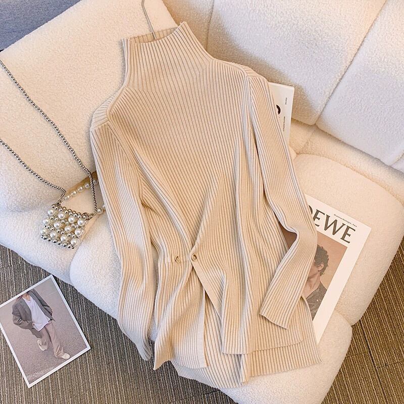 プラスサイズの婦人服 2023 秋と冬の新ファット mm タートルネックスリットニットセーター底シャツカジュアル痩身トップ 大きめサイズ オータム 秋物 ウィンター 冬物 8884195353505003