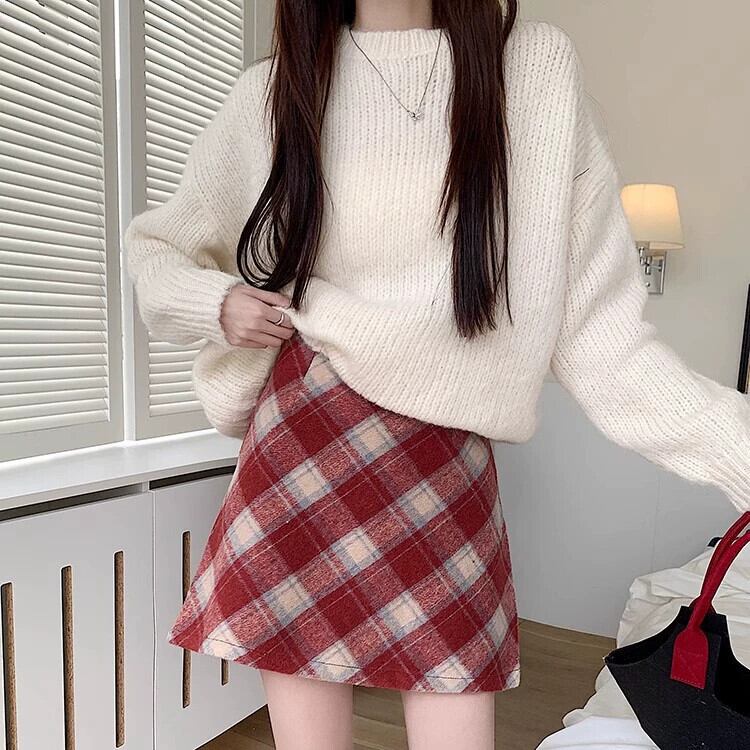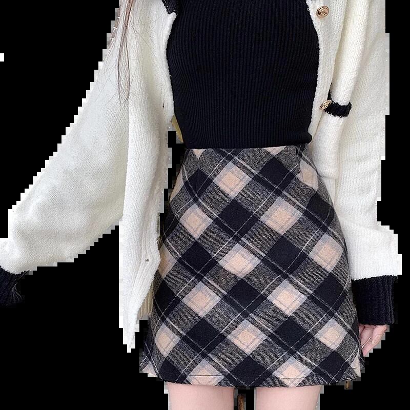 大きいサイズの脂肪ミリメートルチェック柄ウールスカート秋冬 2023 新しい肥厚ラップショートスカートハイウエストスリムスカート ハイウェスト 大きめサイズ オータム 秋物 ウィンター 冬物 8884183399028945