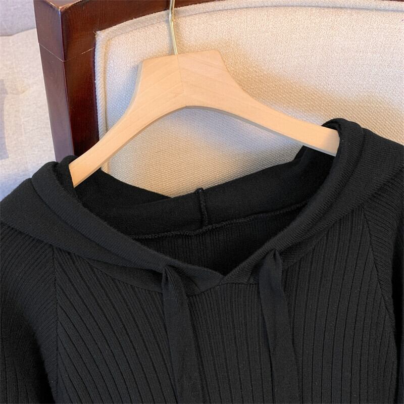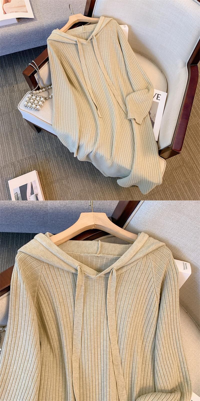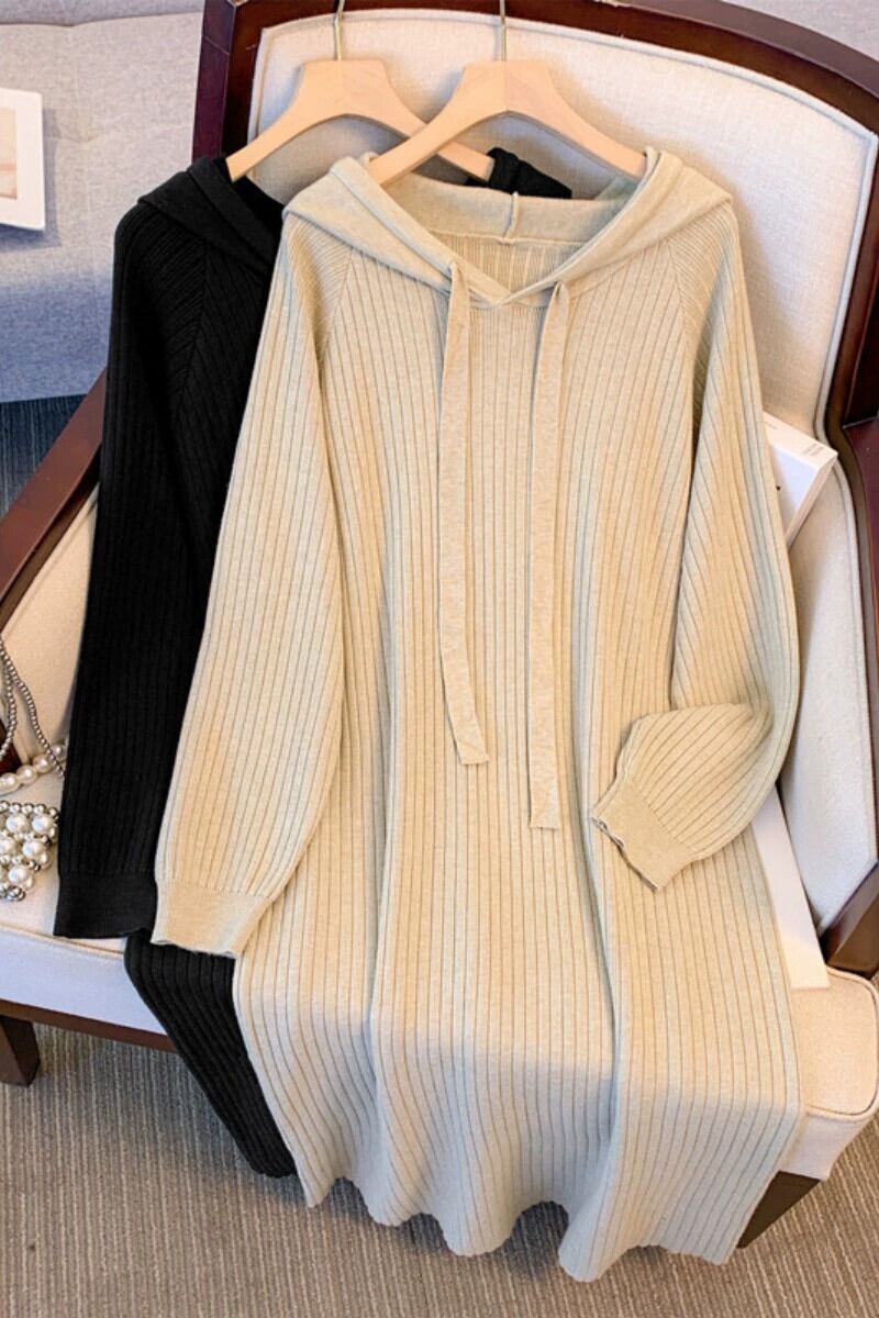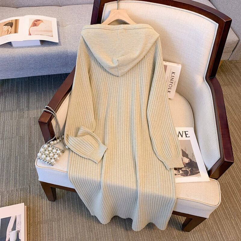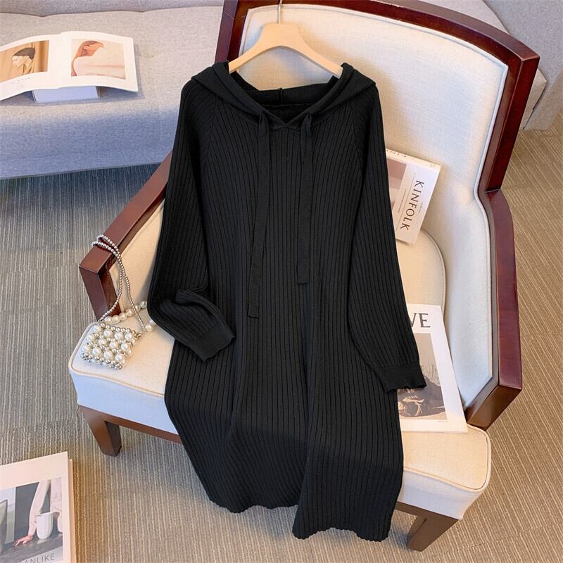 プラスサイズの婦人服 2023 冬の新脂肪姉妹ルーズフード付きニットドレス肥厚底セータースカート女性 大きめサイズ ウィンター 冬物 8884188554313074