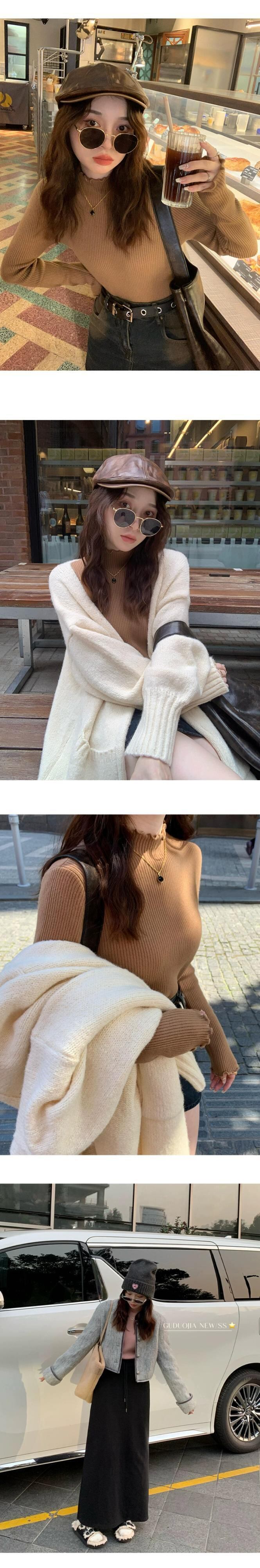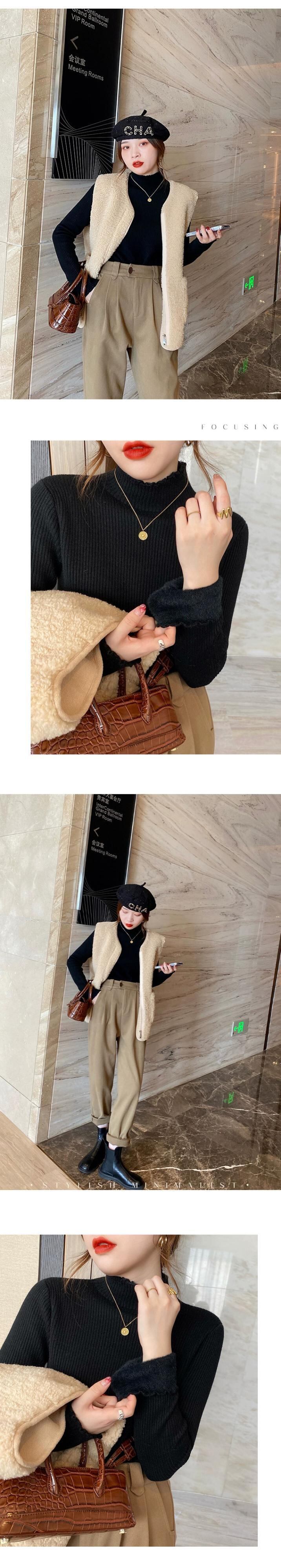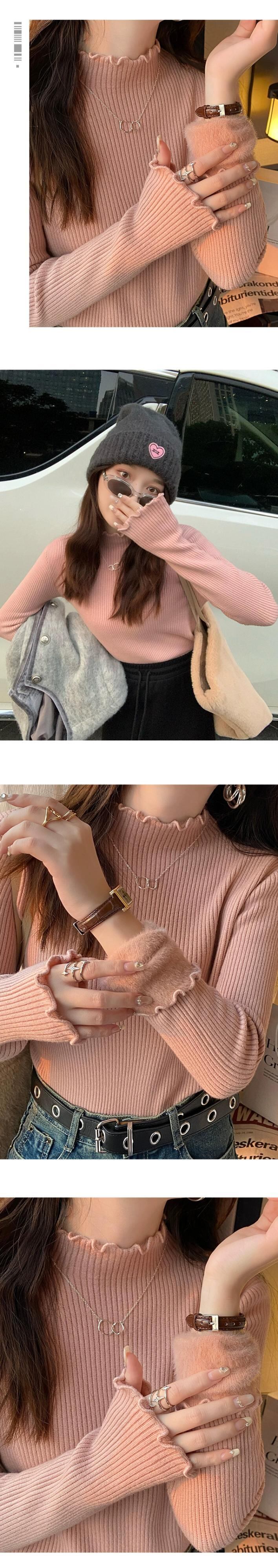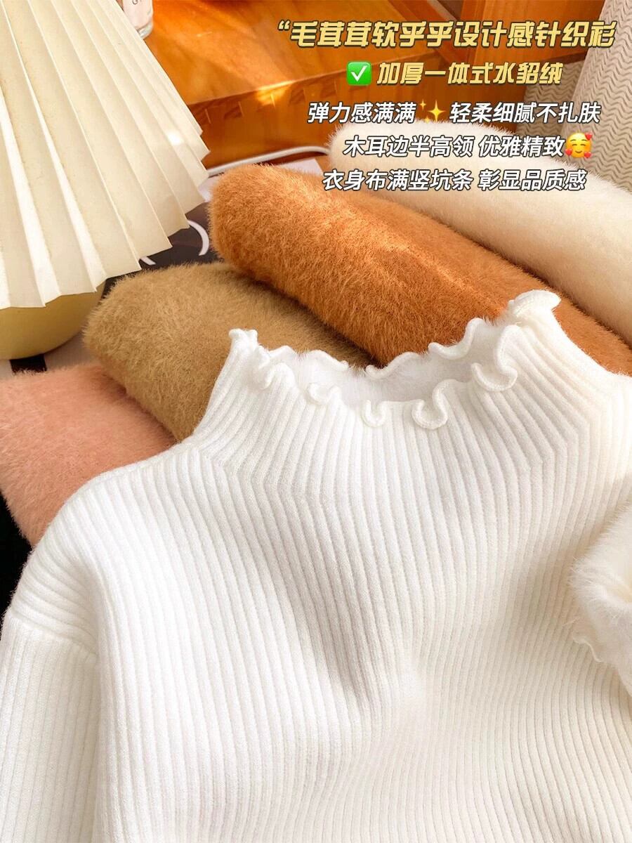 厚手ベルベットオールインワンベルベットニットボトムシャツレディース秋冬ハーフタートルネックセーター、菌類エッジ長袖トップ ロング オータム 秋物 ウィンター 冬物 8884167066960989