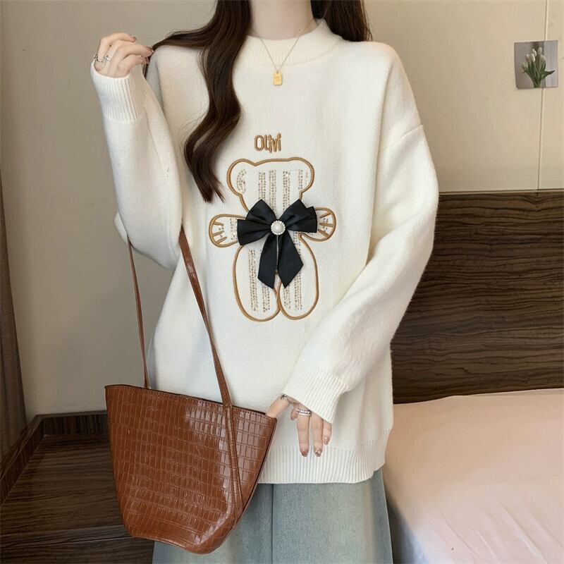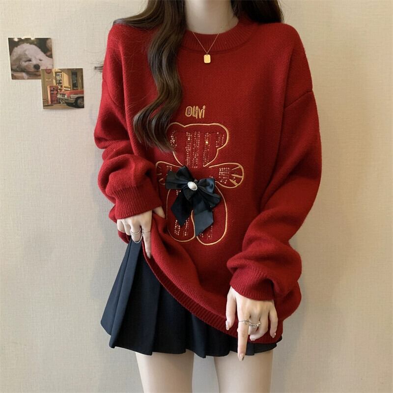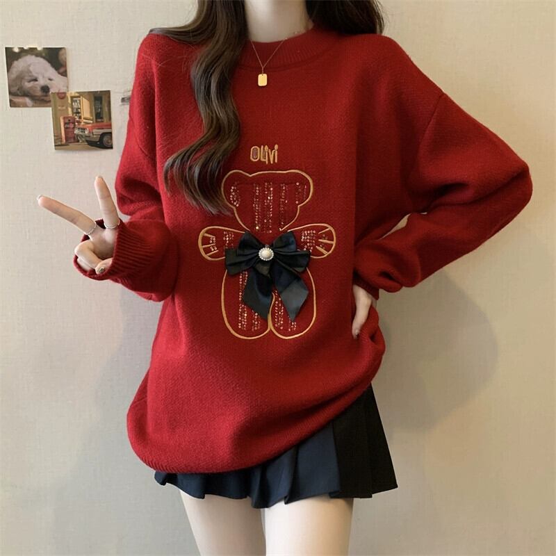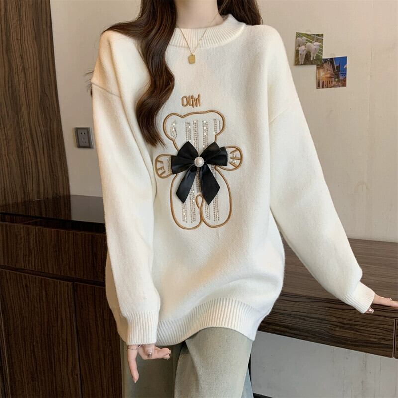 プラスサイズの女性の 2023 冬の新ファットシスタープルオーバーセーターニッチデザインセーター長袖ニットトップ ロング 大きめサイズ ウィンター 冬物 8884117618128158