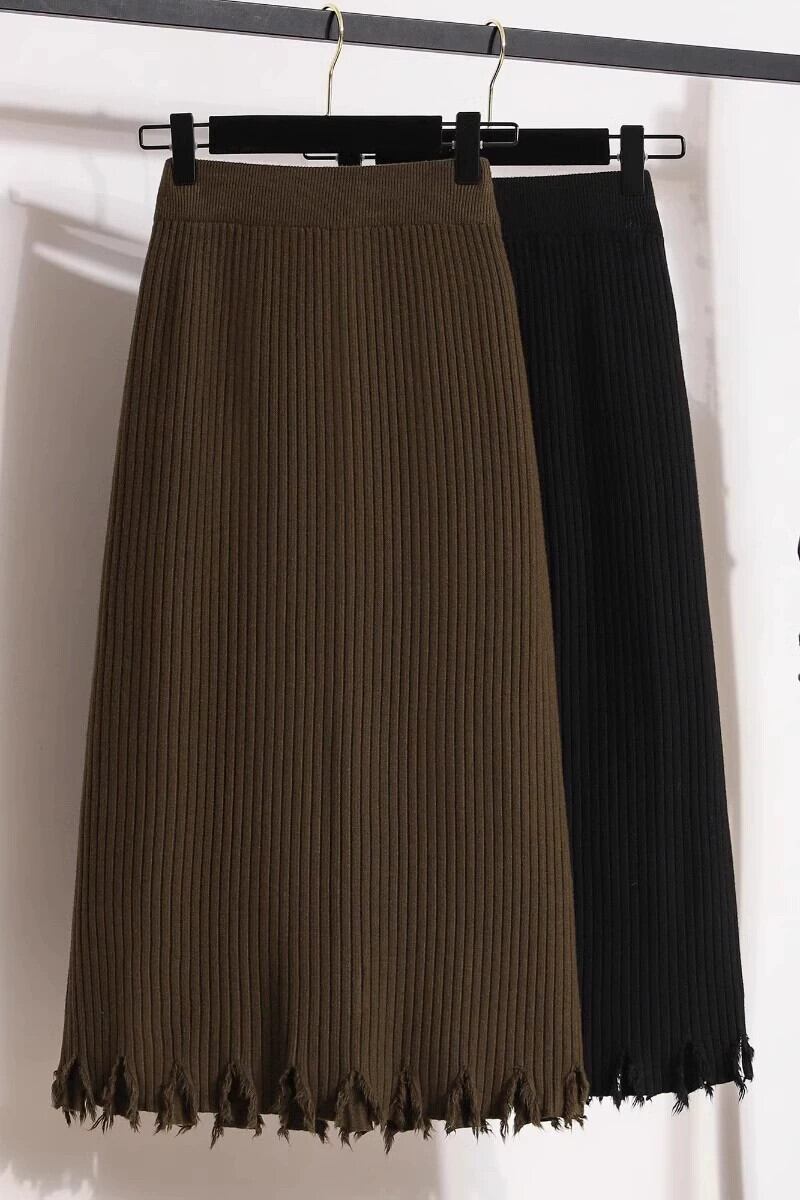 黒ロングスカート女性プラスサイズ脂肪ミリメートルニット a ラインスカート 2023 新しい秋と冬の弾性ハイウエストスカートトレンド ハイウェスト ブラック エラスティック 伸縮 大きめサイズ オータム 秋物 ウィンター 冬物 Aライン 8884122686228380